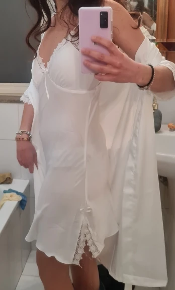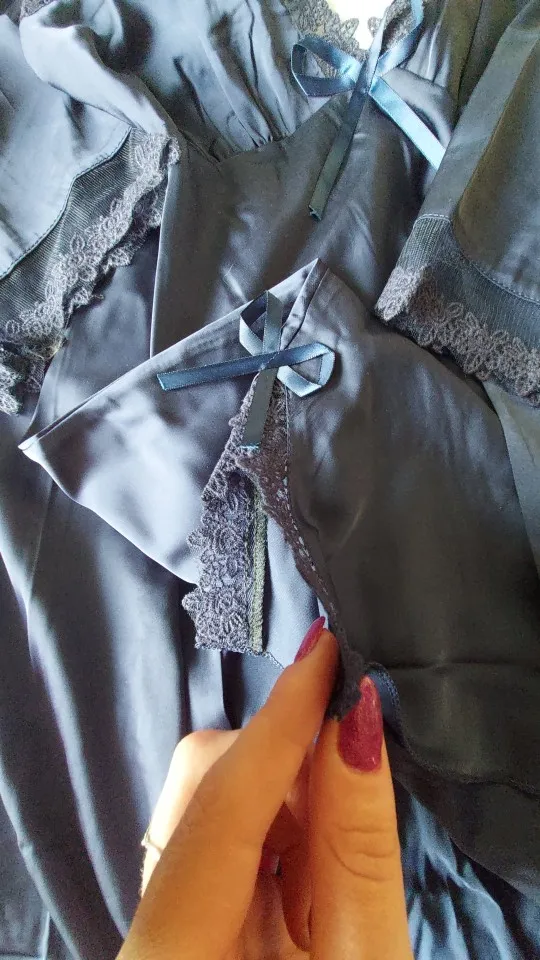 Очень давно хотела купить себе такой красивый комплект, но никак не решалась, боялась получить не то качество, что хотелось. Потом нашла в магазине такой, но цена была ну уж через чур высока, а потом мне стало грустно, и я заказала этот комплект. Честно, не ожидала за такие деньги, получить такую красоту, такое шикарное качество, очень приятно носить, спать. Я в восторге, честно. Чуть позже закажу еще в других цветах. Не маломерит, кстати, все в размерчик)))