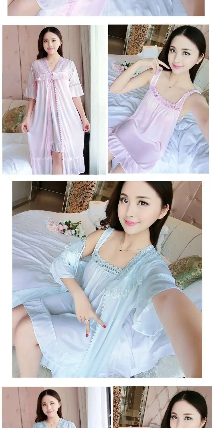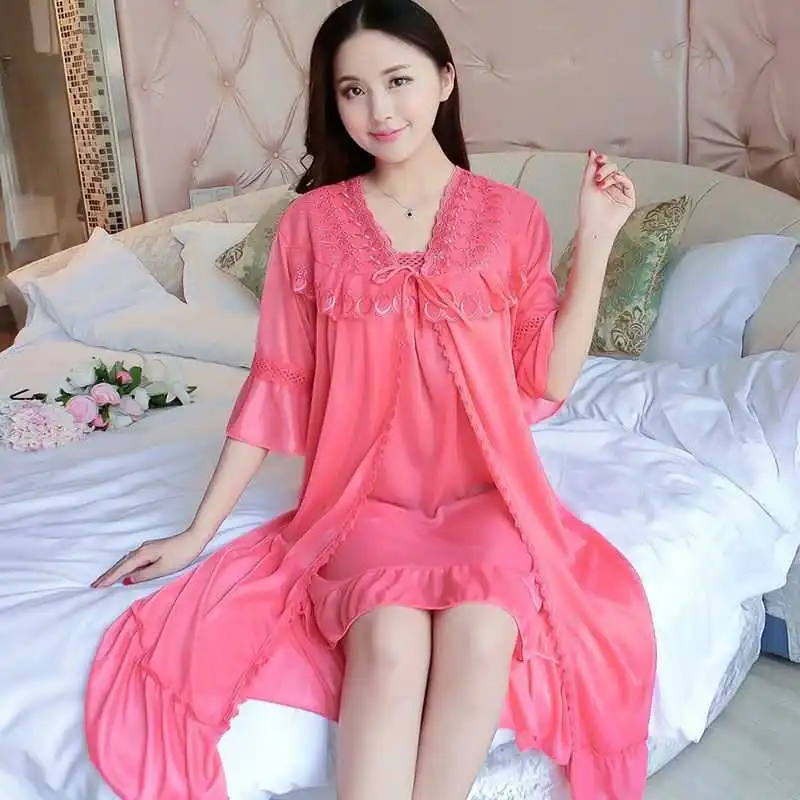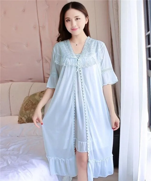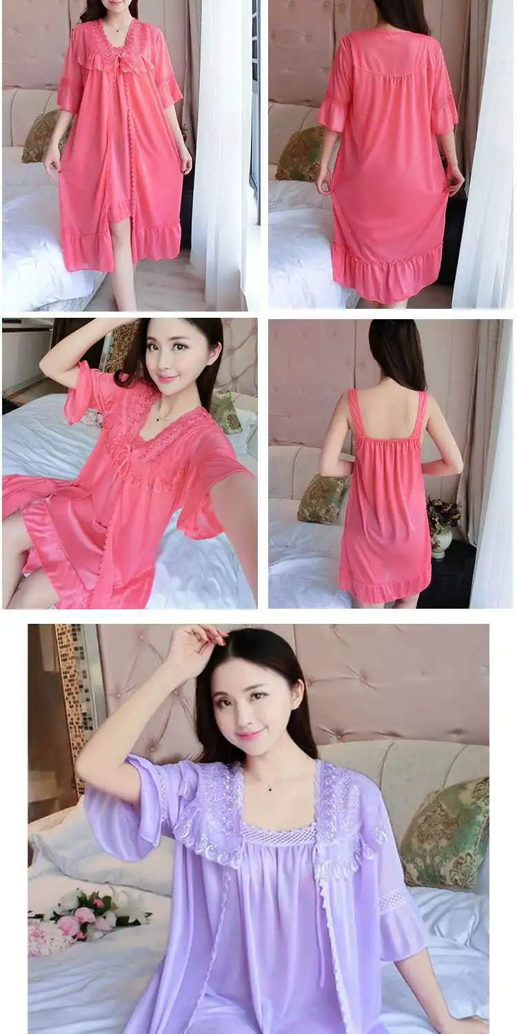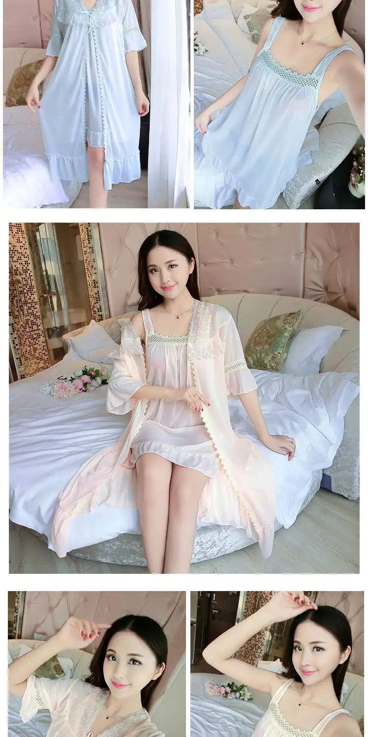 Комплект = ночная рубашка + винтажная одежда для сна, кружевное Ночное платье с рюшами, летняя и осенняя одежда для сна, классный шелк, свободная длинная ночная рубашка