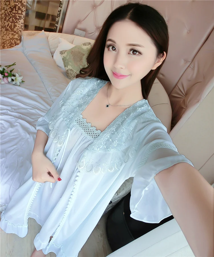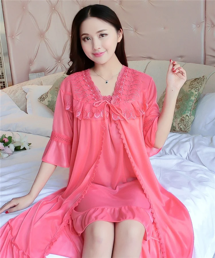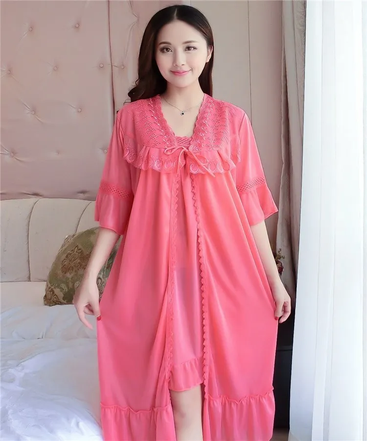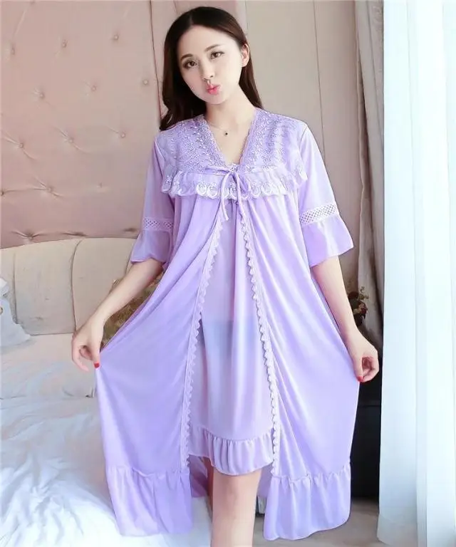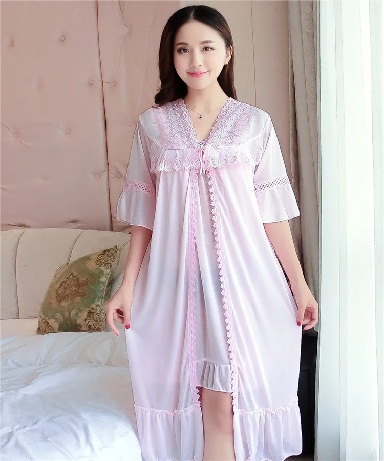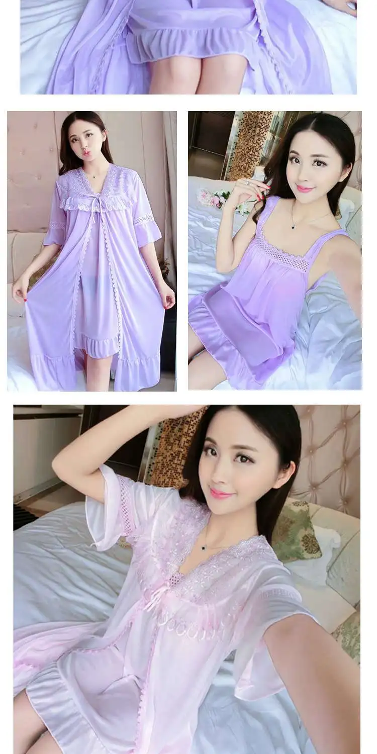 Комплект = ночная рубашка + винтажная одежда для сна, кружевное Ночное платье с рюшами, летняя и осенняя одежда для сна, классный шелк, свободная длинная ночная рубашка