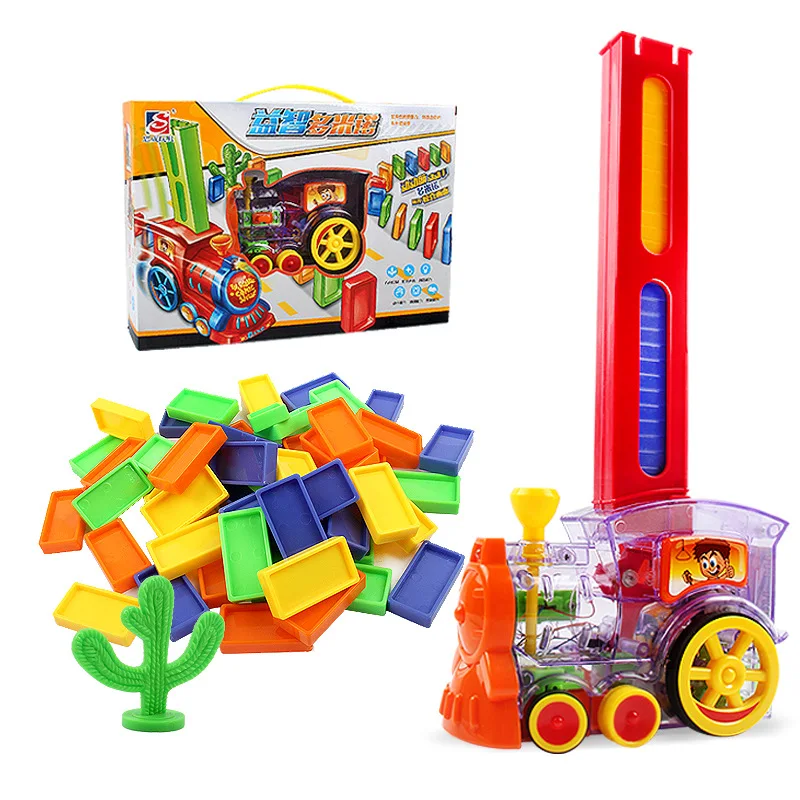 Моторизованный поезд-домино, набор строительных блоков, игрушка сде...