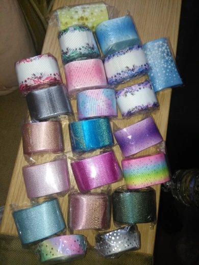 Очень красивая лента с блёстками не осыпаются.. Отрезали 5м 23..вместо 5 ярдов огромное спасибо.. Не первый раз заказываю в этом магазине хорошее качество ленты очень красивые ыстрая доставка