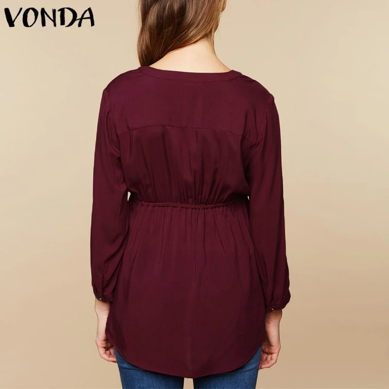 Женские блузки 2021 VONDA осень рубашки для мальчиков повседневные свободные однотонные Блузы сексуальный v-образный вырез с высокой талией платье с длинными рукавами и высокой талией, размера плюс, топы