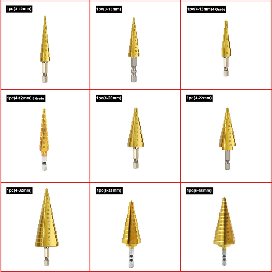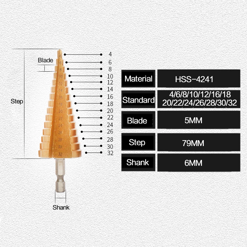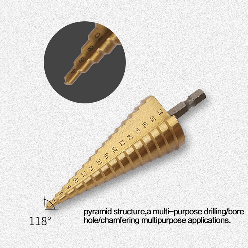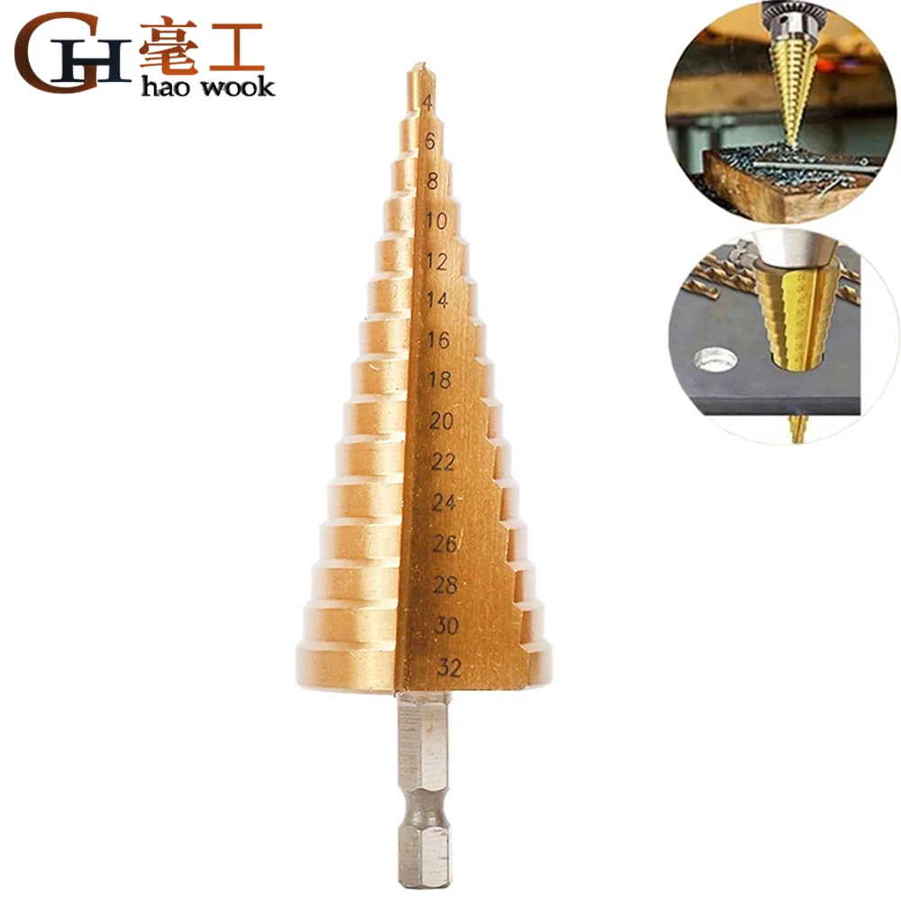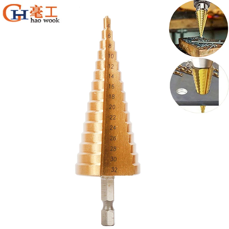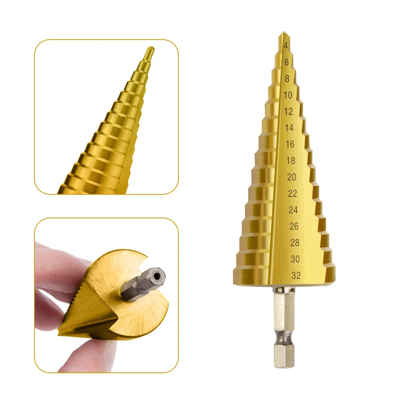 4-32 мм HSS 4241 шестигранный хвостовик Коническое титановое ступенчатое Коническое сверло металлическое Отверстие Резак Мини дрель электроинструменты аксессуары