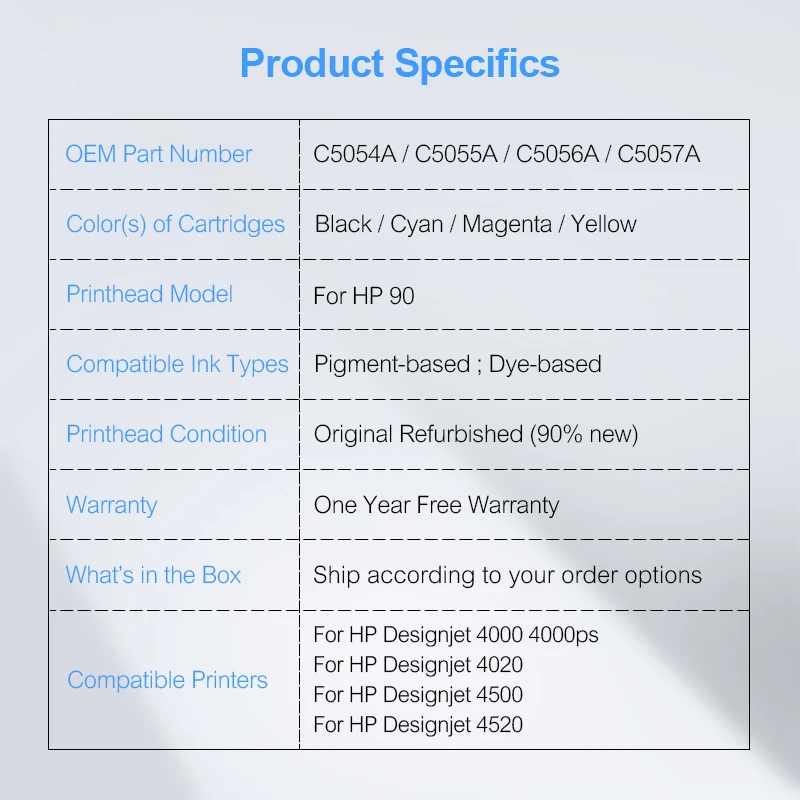 Печатающая головка для принтера HP 90 C5054A C5055A C5056A C5057A HP 90, печатающая головка для принтера HP DesignJet 4000 4000ps 4020 4500 4520 (BK C M Y)