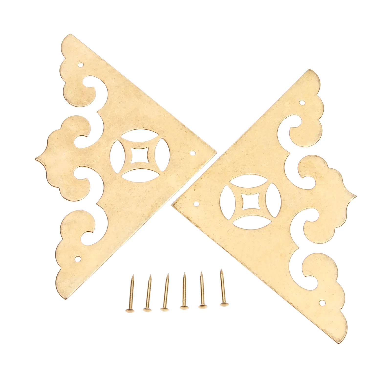 DRELD 2 шт. китайская антикварная мебель Медь медными переходниками, обтянутый тканью деревянная шкатулка для украшений Медь Обёрточная бумага угол декоративные пленки