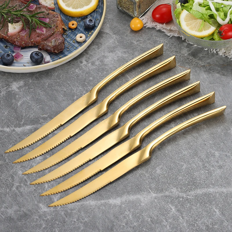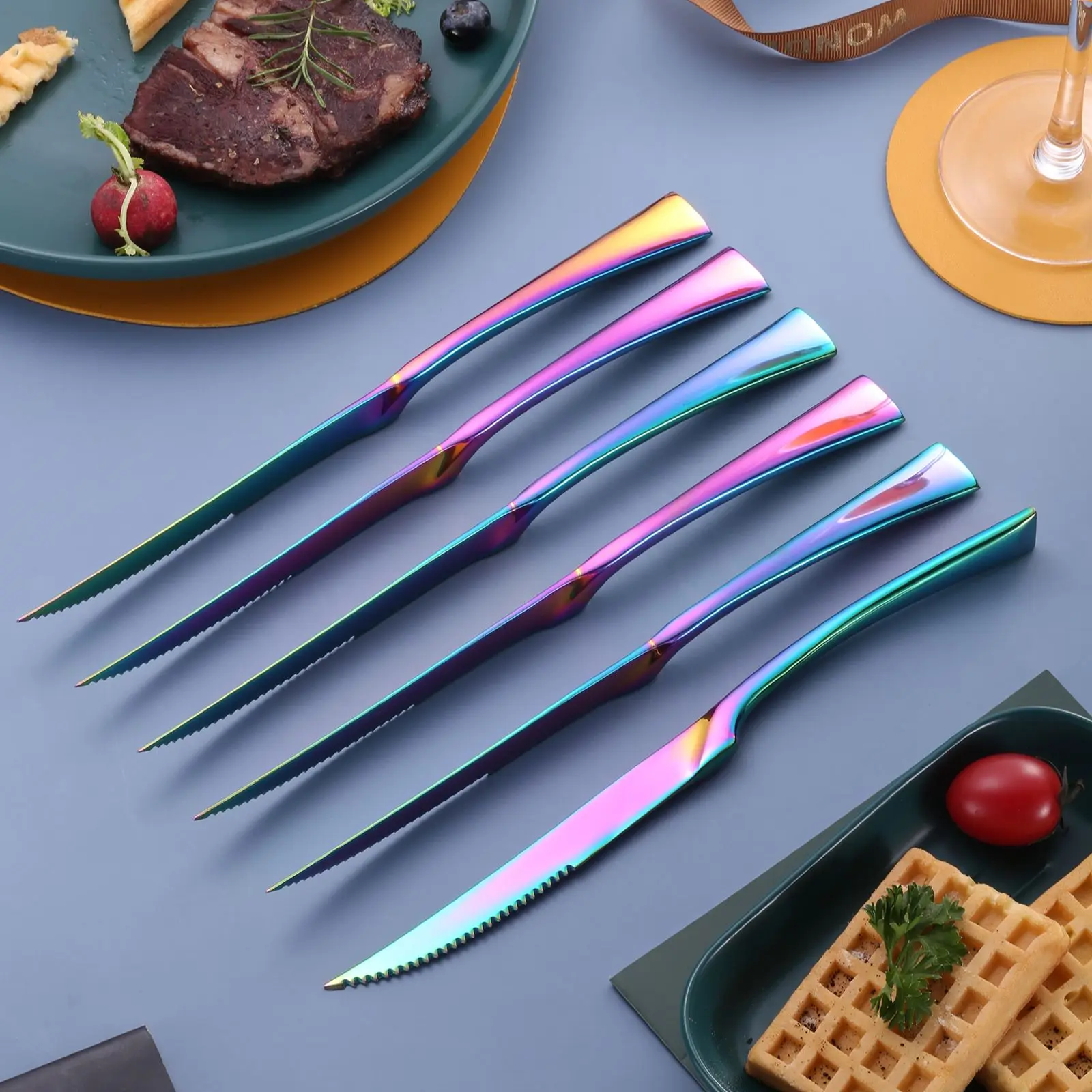 Набор из 6 предметов из нержавеющей стали, острый нож для стейка, черное золото, розовое золото, серебряный нож для мяса, набор столовых приборов для ресторана, безопасный для мытья в посудомоечной машине