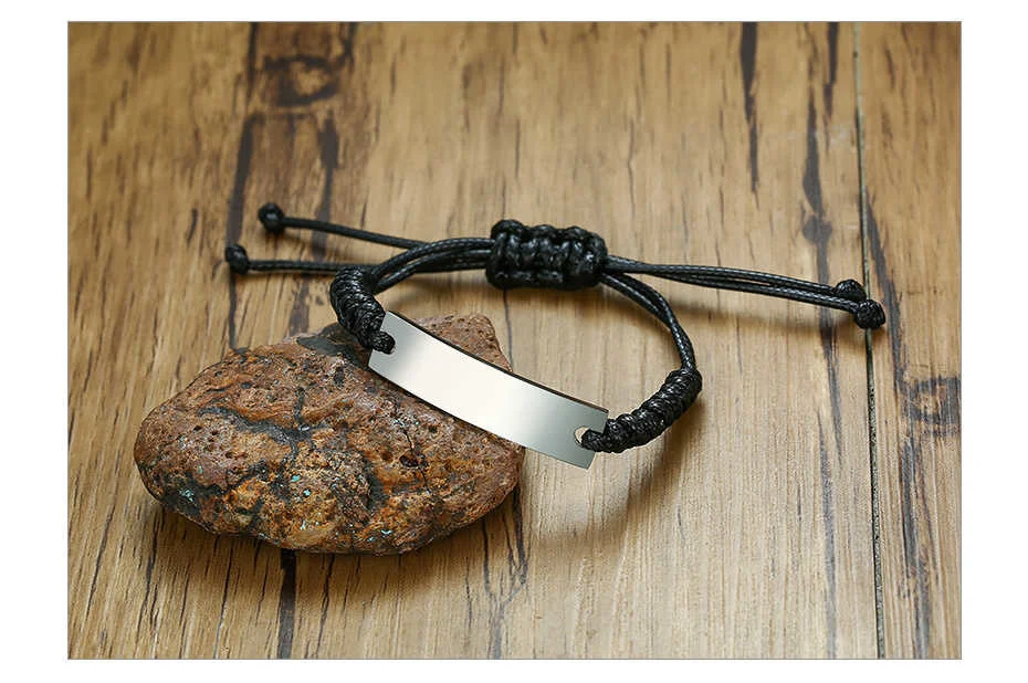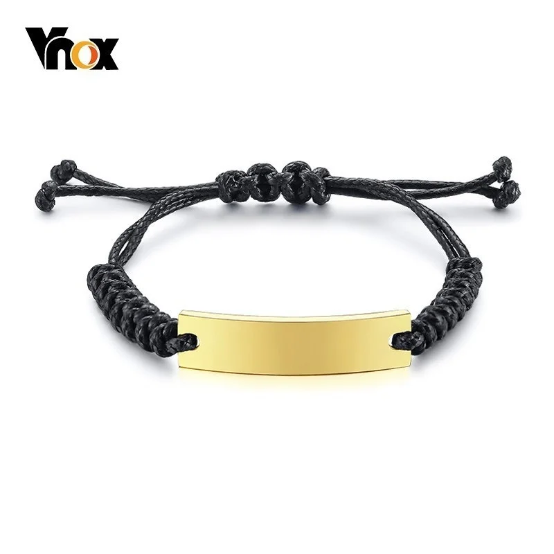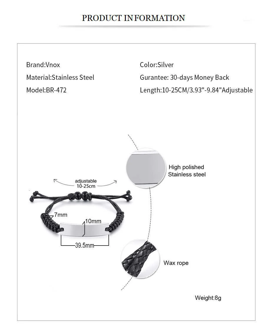 Идентификационные Браслеты Vnox унисекс из нержавеющей стали с черным шнуром, регулируемая длина