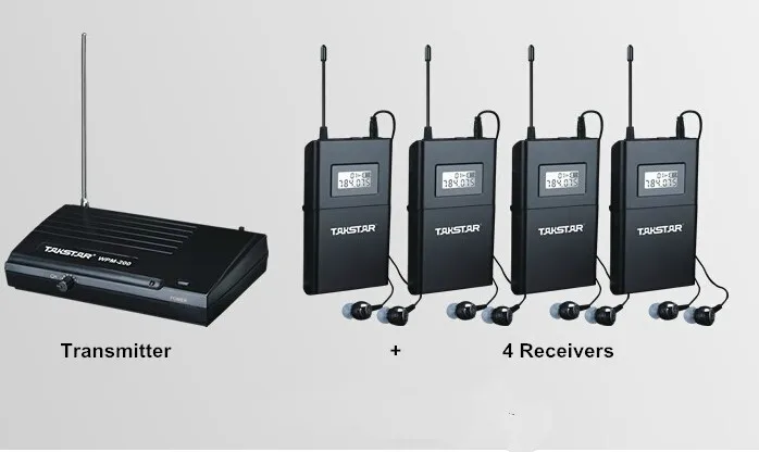 Беспроводная УВЧ система монитора Takstar wpm-200wpm200, стерео, беспроводная гарнитура, сценические мониторы, 1 передатчик + 4 приемника