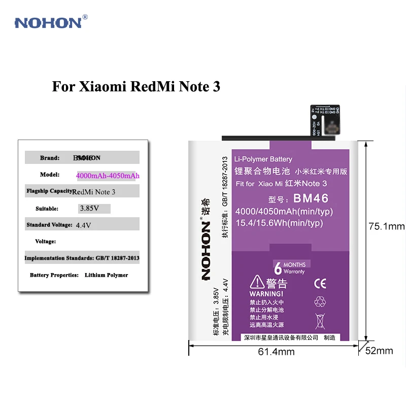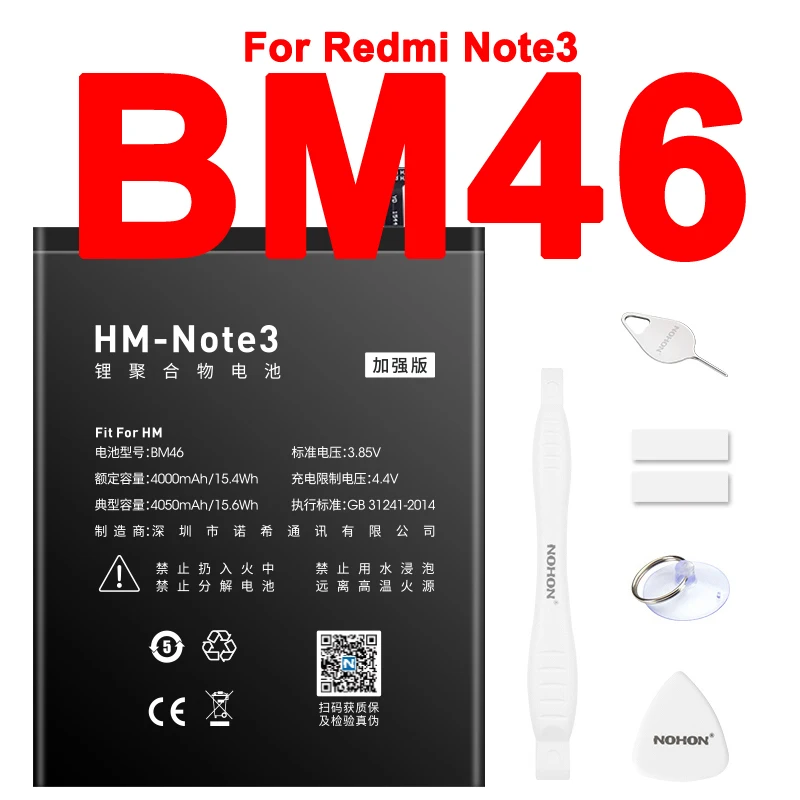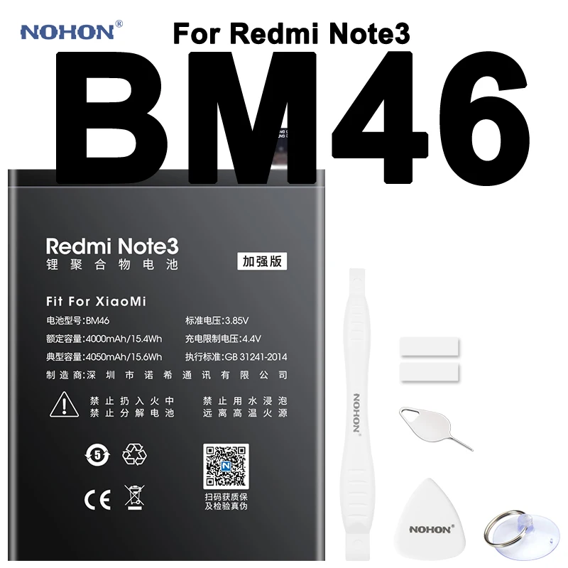 Аккумулятор Nohon для XiaoMi RedMi Note 3 Note3 BM46 4050 мАч, литий-полимерный аккумулятор большой емкости для RedMi Note 3 BM46