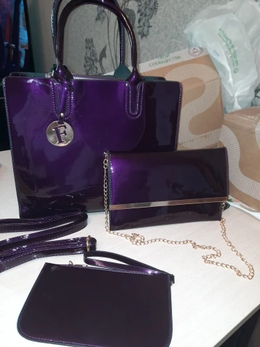 Сумка-мессенджер женская из лакированной кожи, 3 комплекта