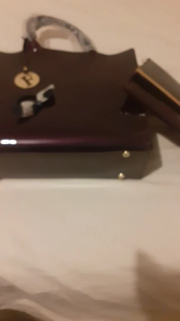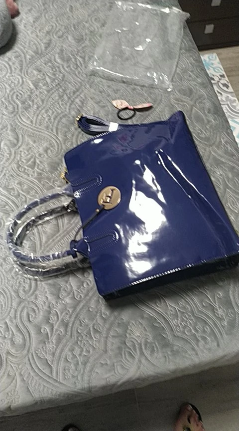 Изделие изготовлено из синтетического материала с хорошим эффектом. Синий лак очень приятный, и я надеюсь, что он будет держать вовремя, размеры удовлетворительные, и есть хорошее удержание сумки, когда она находится на столе. Это очень хорошее соотношение цены и качества, и это подарок, который понравится тому, который вы предлагаете