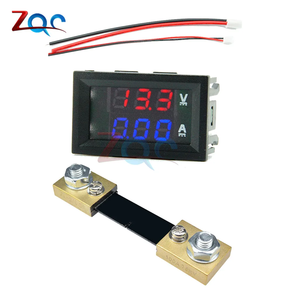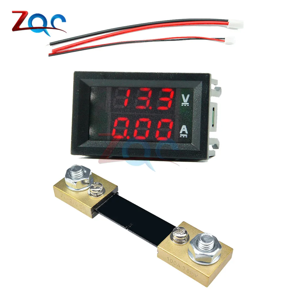 Вольтметр-амперметр, мини-тестер с двойным светодиодным дисплеем 0,28 ", постоянный ток 0-100 в/7-110 В, а, с шунтом а 75 мВ
