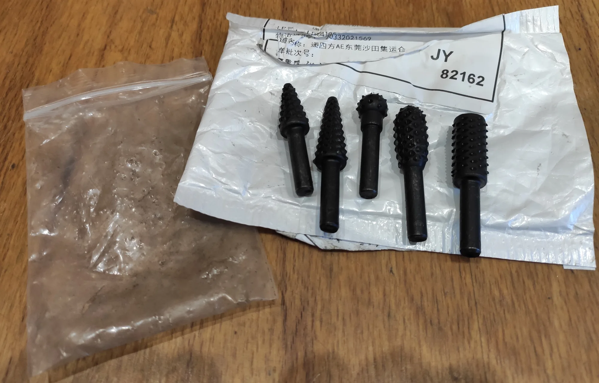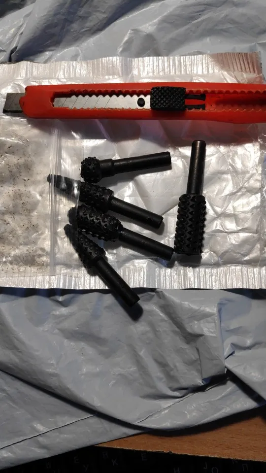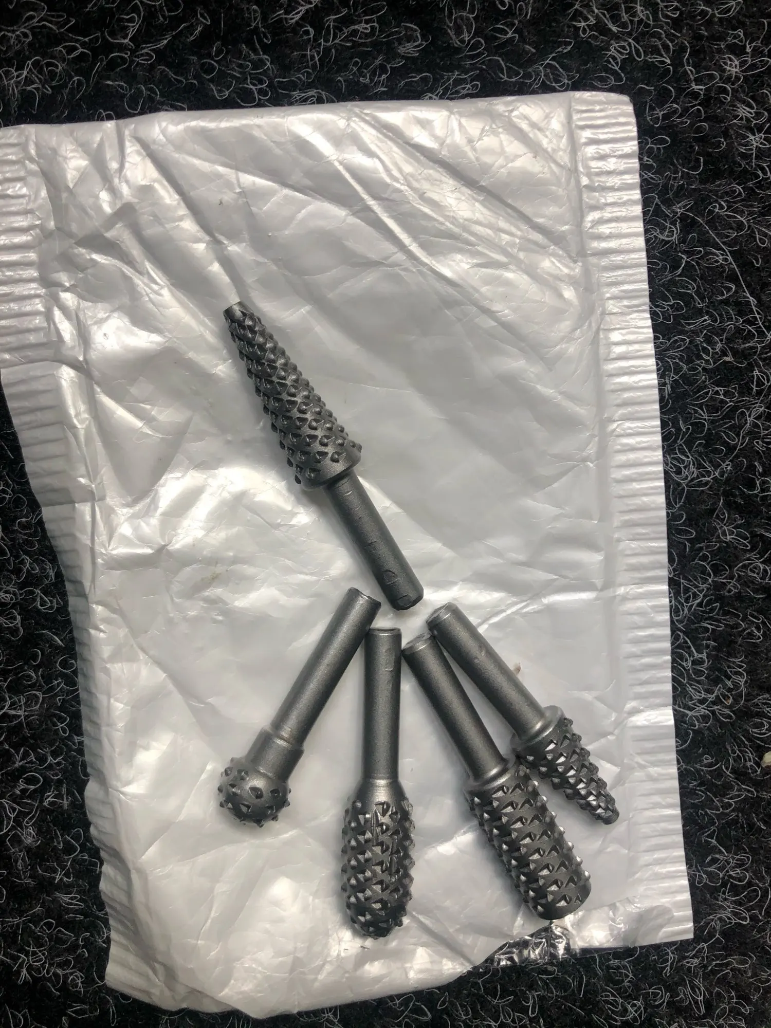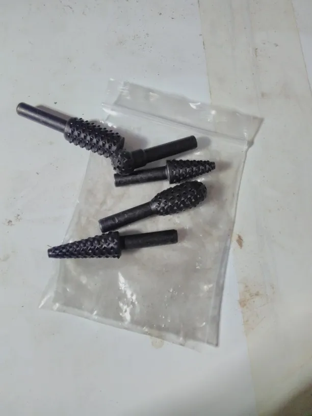 нормальные стальные шарошки, магнитятся. По дереву работы нормально, не забиваются. пришли в смазке