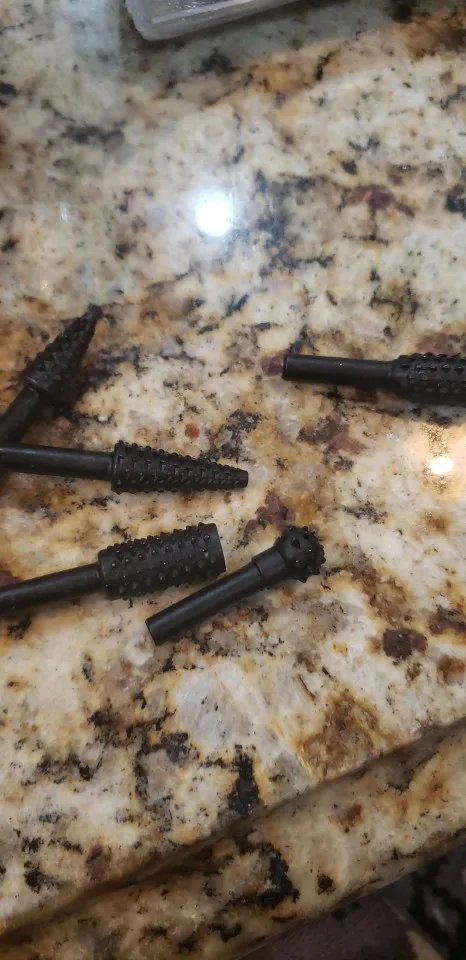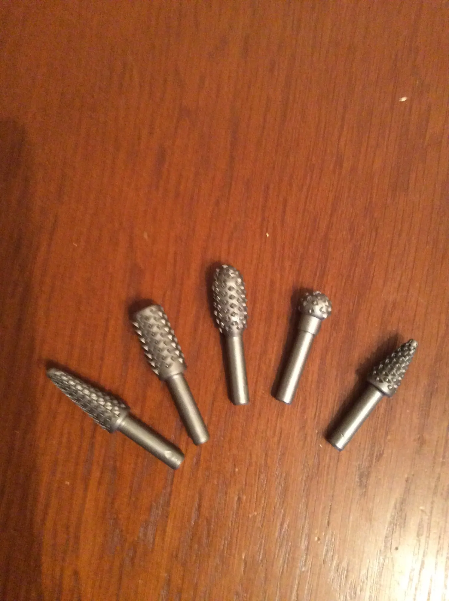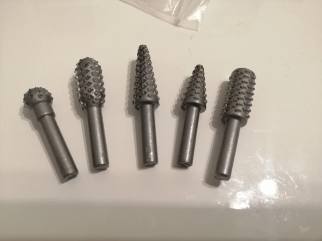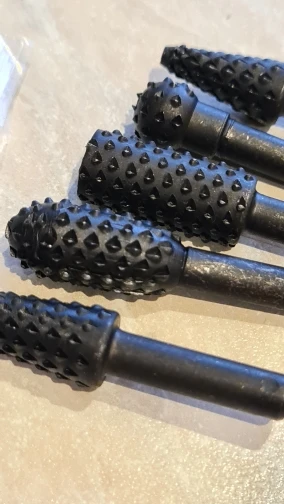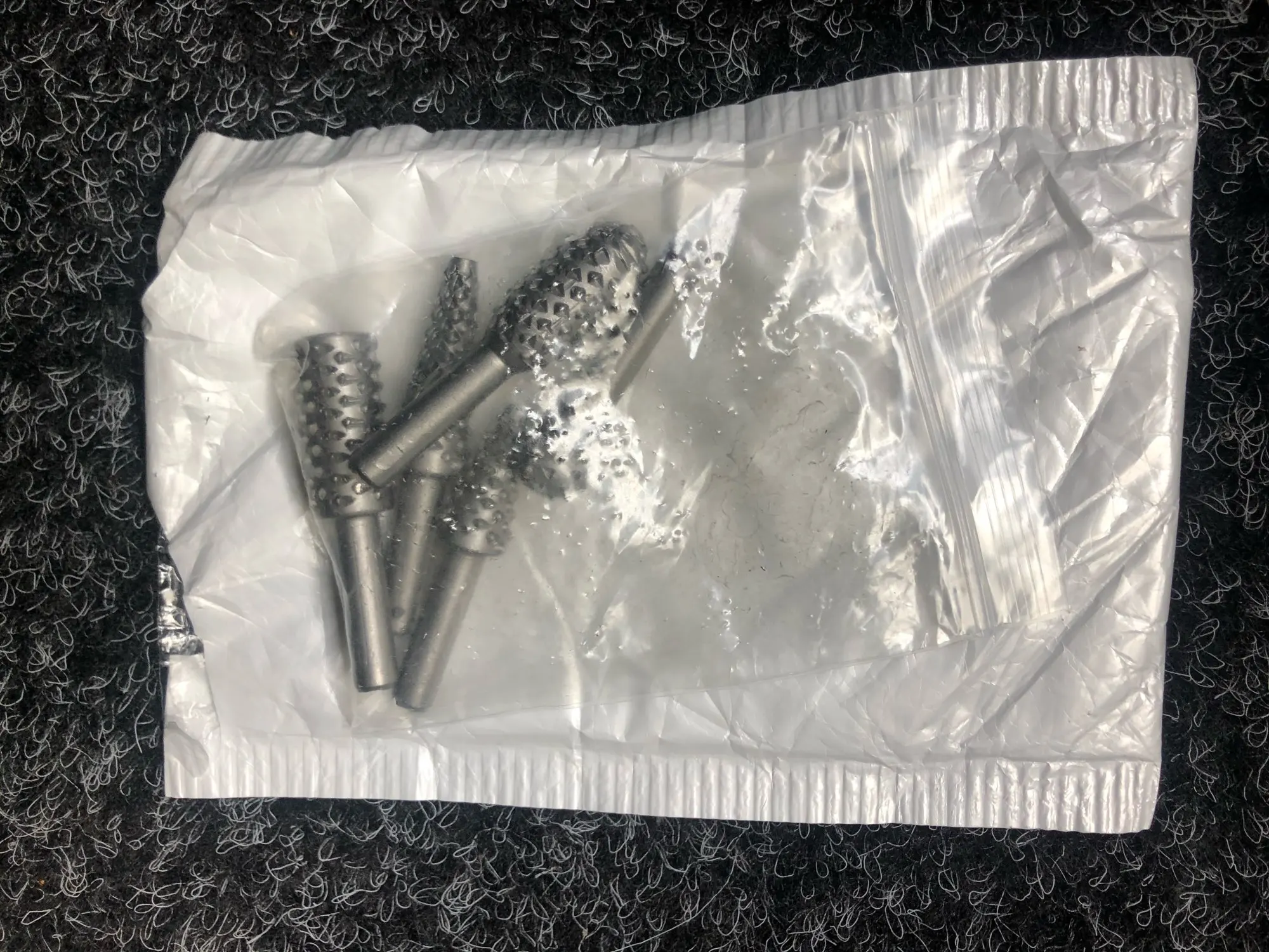 нормальные стальные шарошки, магнитятся. По дереву работы нормально, не забиваются. пришли в смазке