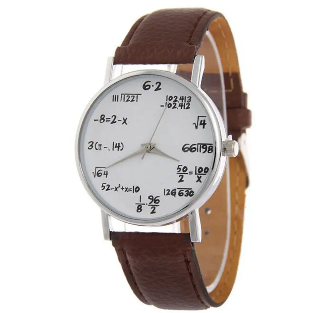 Женские часы с математической функцией, аналоговые кварцевые наручные часы с кожаным ремешком из сплава, 11