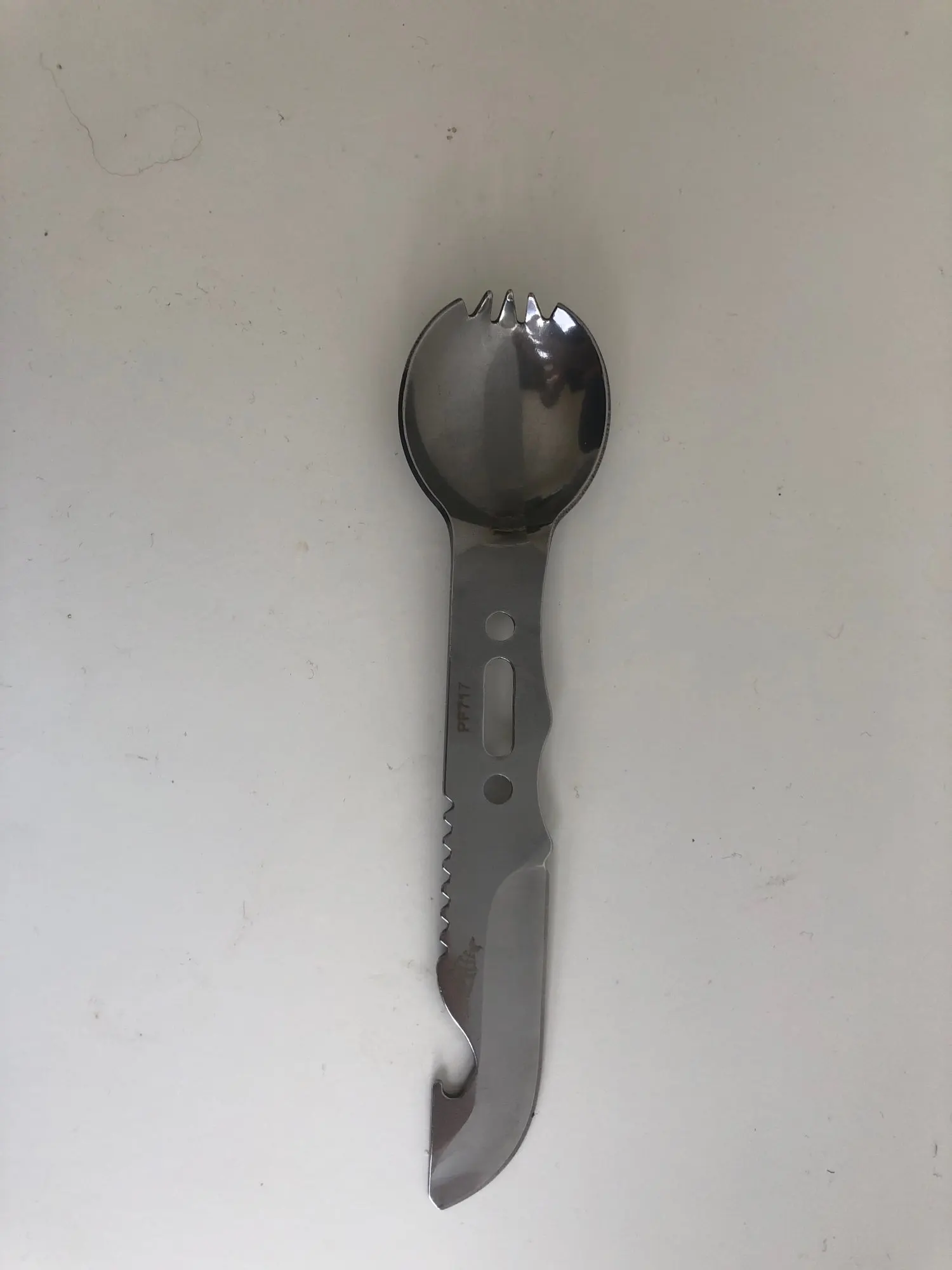 Многофункциональная посуда для кемпинга, открывалка для бутылок с ложкой и вилкой, портативный инструмент для безопасности и выживания, прочный набор для выживания из нержавеющей стали