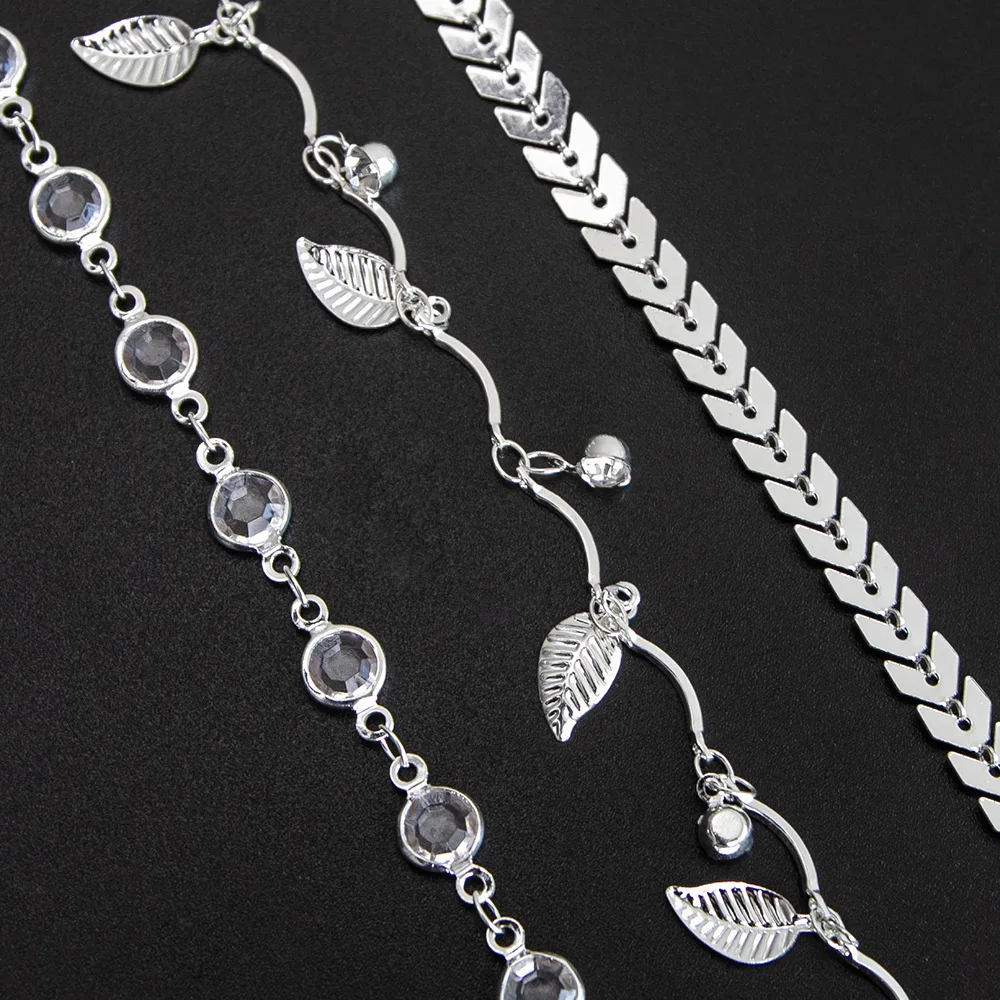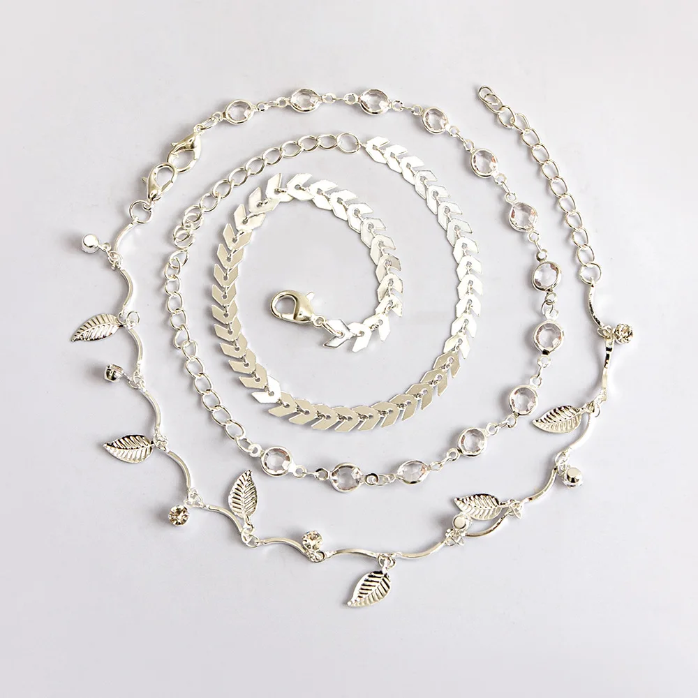 Женские браслеты с длинной цепочкой в форме листа, модные ювелирные изделия, аксессуары, женский пляжный браслет на щиколотке, 3 штуки, сплав, ножной браслет