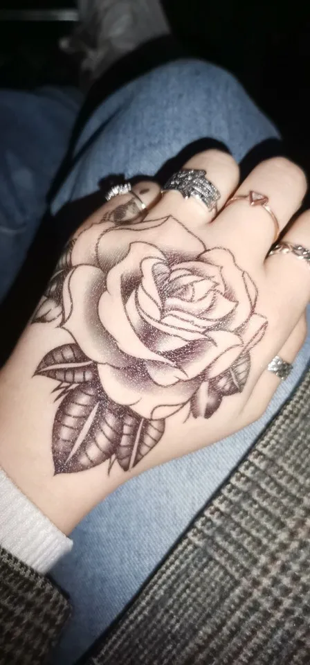Водостойкая временная татуировка-наклейка цветок Роза флэш-тату рука ладонь палец назад Татуировка боди-арт для женщин и мужчин