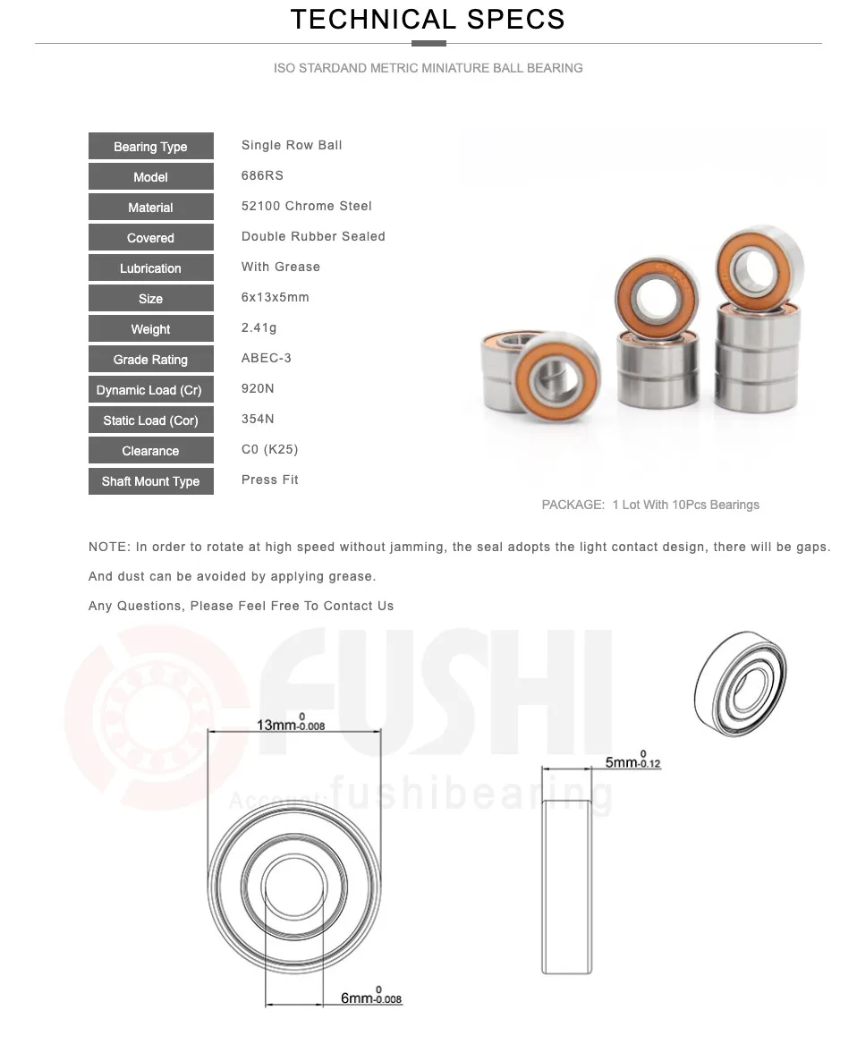 Подшипник 686RS 10 шт. 6x13x5 мм ABEC-3 Радиоуправляемый электромобиль грузовик 686 RS 2RS шарикоподшипники 686-2RS оранжевый герметичный