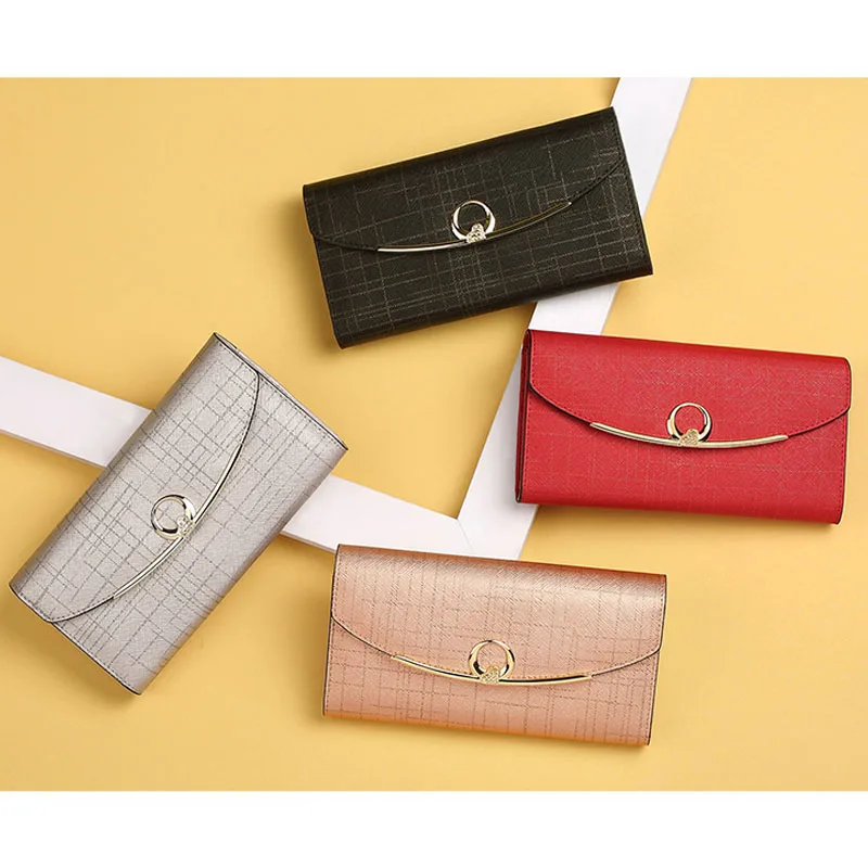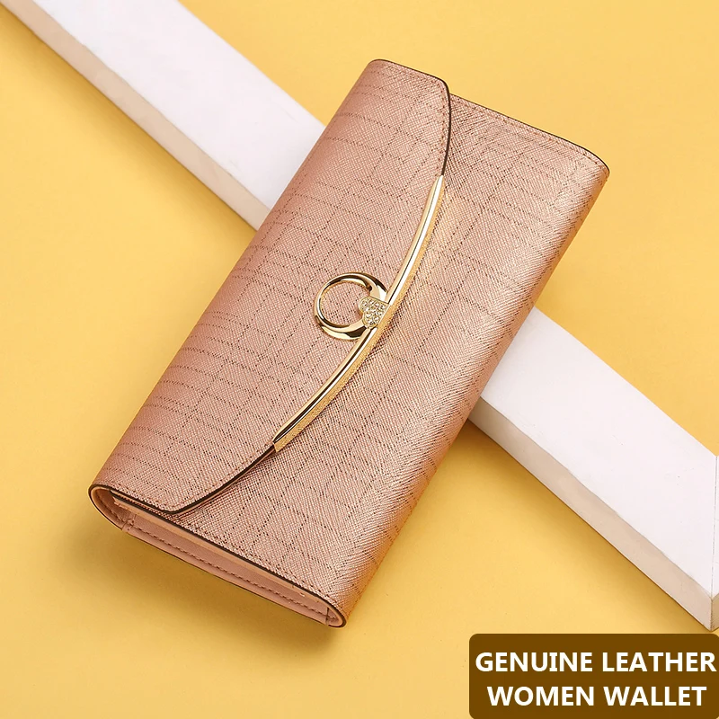 Кошелек женский из натуральной кожи, длинный, вместительный, с тремя складками
