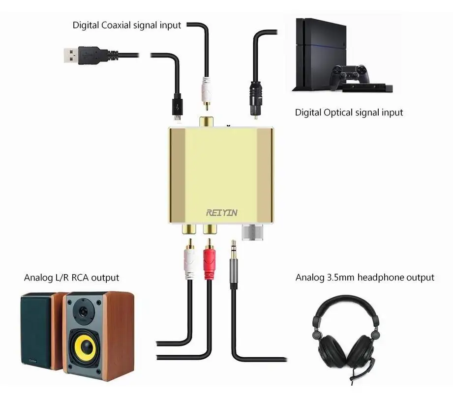 Оптический коаксиальный аудиоконвертер Reiyin DAC 192 кГц 24 бит для игровой консоли HD TV DVD XBOX PS4