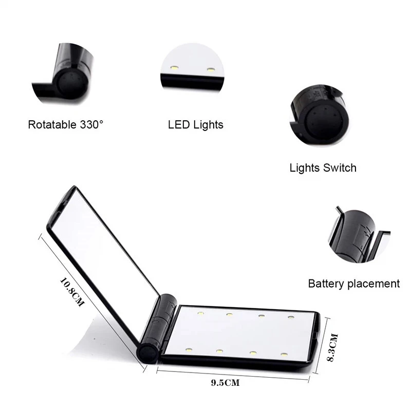 1 шт. 8 светодиодных ламп, женские складные зеркала для макияжа, женское косметическое ручное складное портативное компактное карманное зеркало