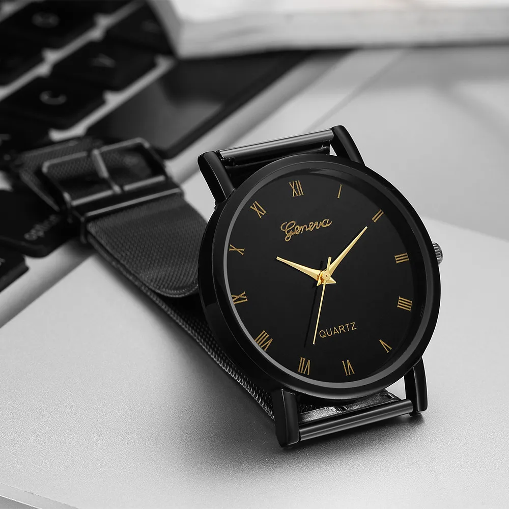 Женские тонкие наручные часы, женские и мужские повседневные винтажные черные кварцевые часы с крошечным сетчатым ремешком, модные современные спортивные деловые часы