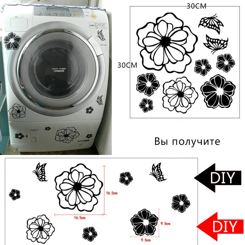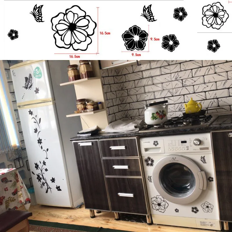 Высококачественные наклейки на холодильник для мытья дома, настенные Стикеры с цветами и бабочками, домашний декор для кухни, ванной комнаты, обои