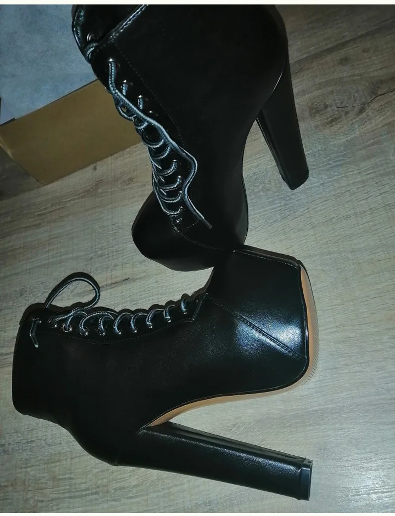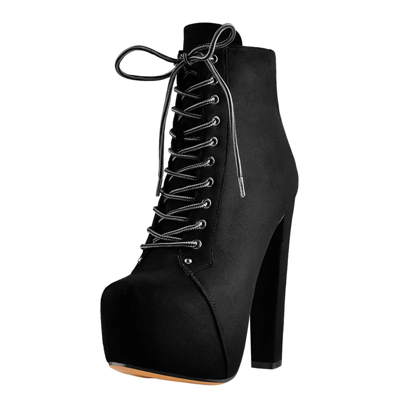 Женские короткие ботинки Onlymaker на платформе с круглым носком, черные толстые Полуботинки на высоком массивном каблуке со шнуровкой для вечевечерние