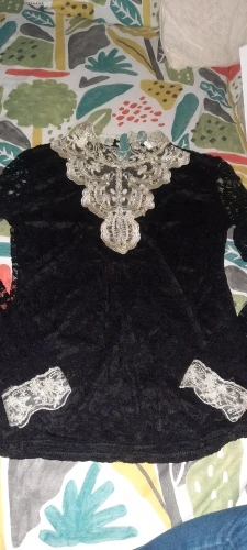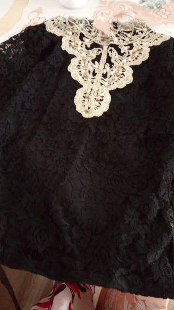 в целом мне блуза понравиламь,но стразы отвалились сразу и не очень понравились золотистые бусинки как- то дешево смотрится, думаю что чуть переделаю и нашью бисер вместо золотистых бус и рукава оказались коротковаты на 4- 5 см,хотя взяла на размер больше