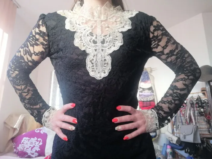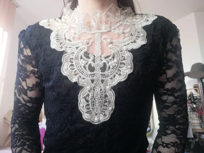 Новая женская сексуальная Кружевная блуза с вышивкой женская рубашка с воротником-стойкой и длинным рукавом размера плюс 3XL