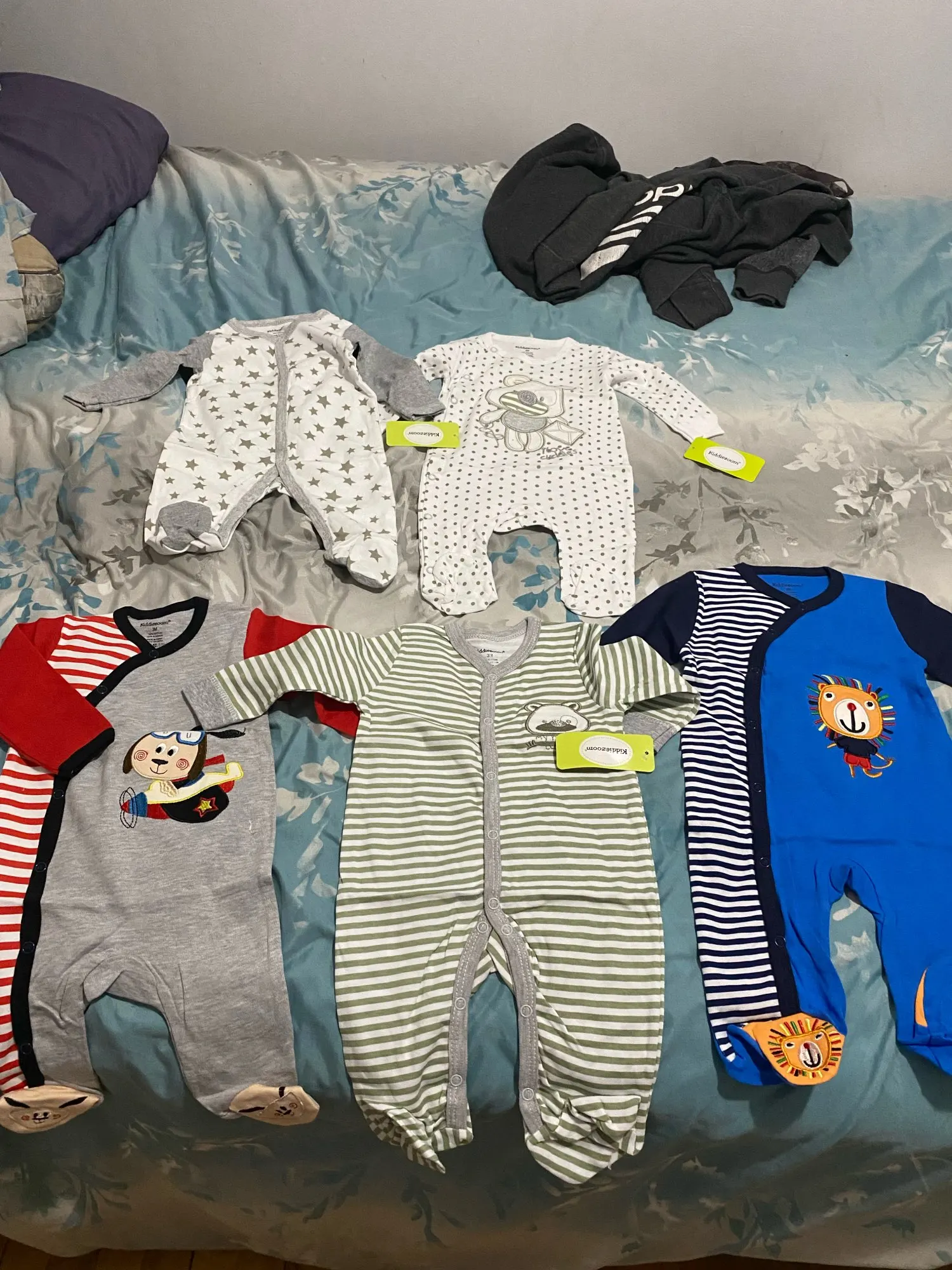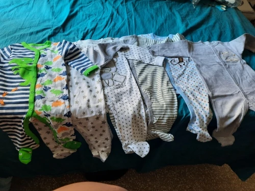 Я купил размер 12 месяцев, но они не такие большие. Моему малышу 9 месяцев, и он все еще подходит, но в течение 12 месяцев он будет туго. Один поставляется с дефектами. Но мне они все равно нравятся, потому что для повседневной жизни и BLW одежда становится очень грязной