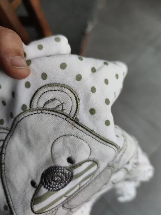 Приятный материал, но с небольшим фабричным запахом. Думаю после стирки пройдёт. Кнопочки жёсткие, иногда сложновато растёгивать. У бодика с собачкой на ножках приделаны ушки. Товар дошёл ОЧЕНЬ быстро (за 10 дней)