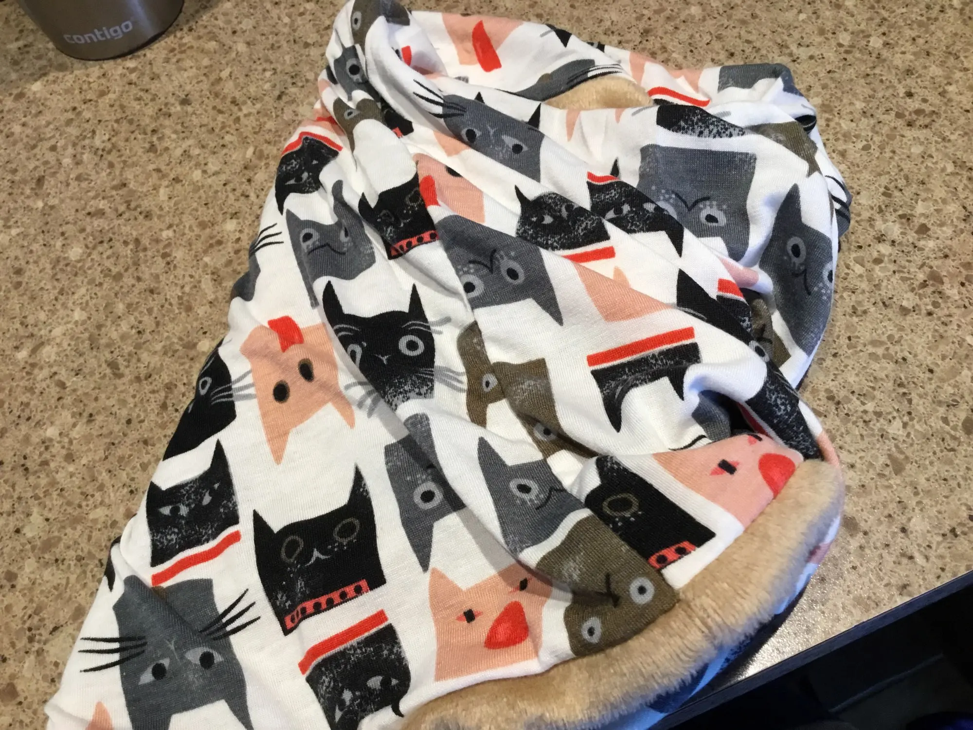 очень понравилась моей жене. отлично, удобно, трансформер. котики классные! и можно использовать как маску и как шарф! рекомендую!