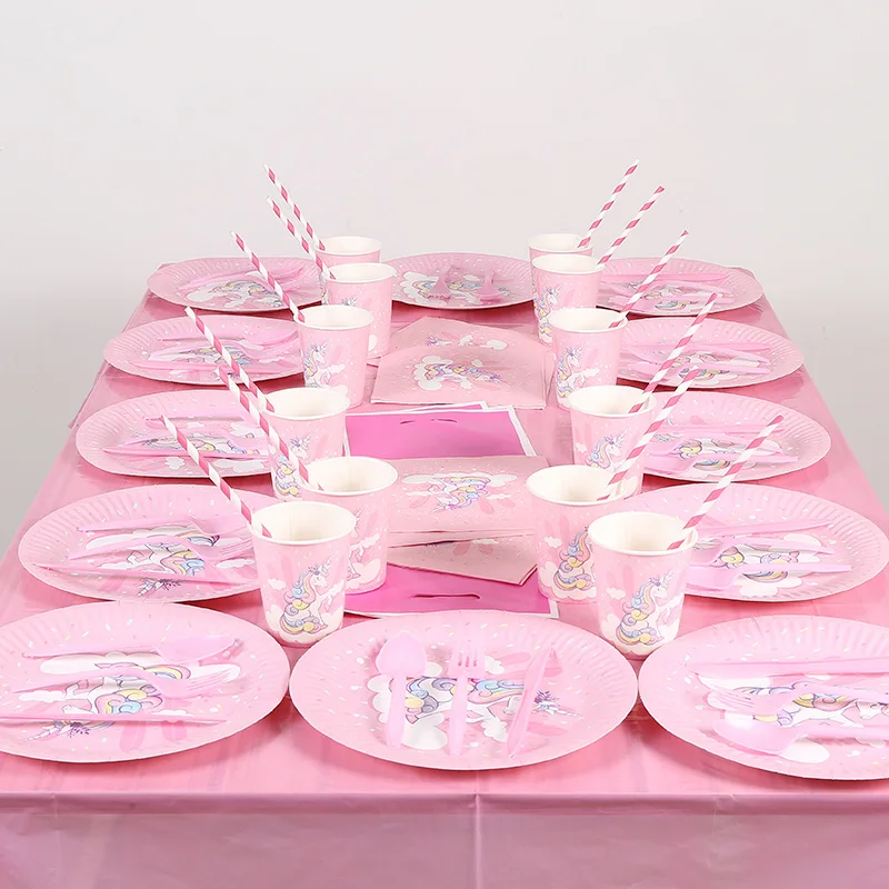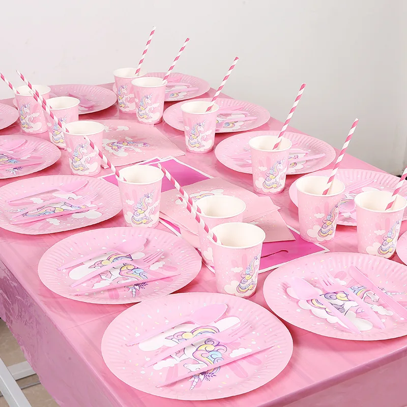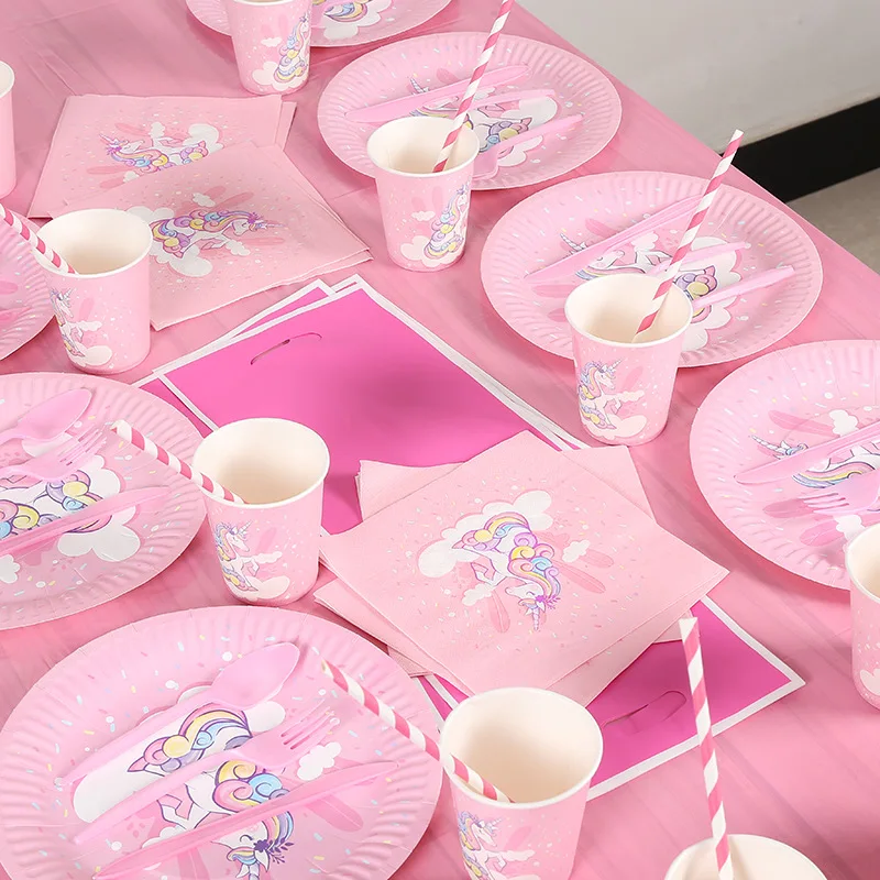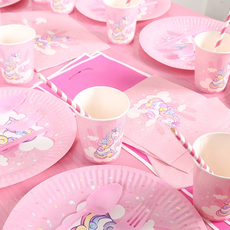 Одноразовая посуда для вечевечерние в виде единорога, тарелка для детского душа, бумажный стаканчик, бумажные полотенца, украшения