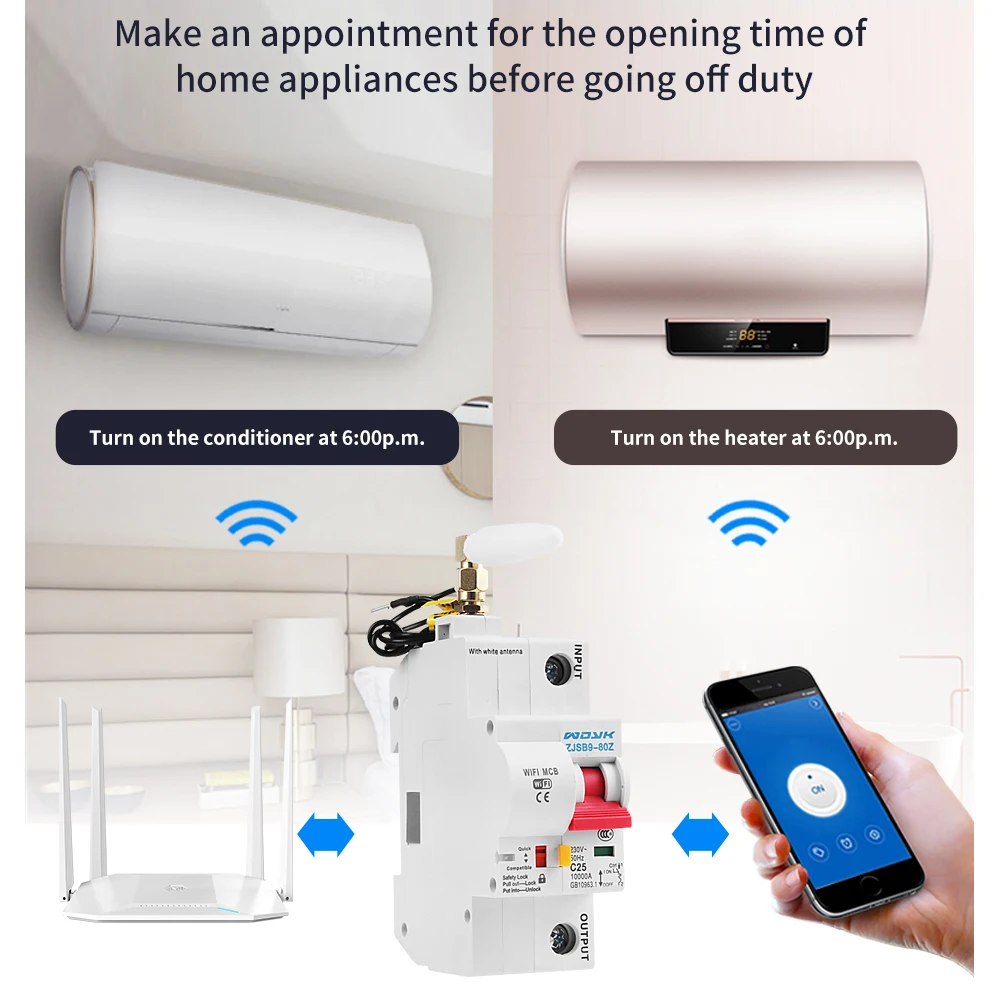 1P WiFi умный выключатель автоматический выключатель защита от перегрузки от короткого замыкания с Amazon Alexa Google home для умного дома