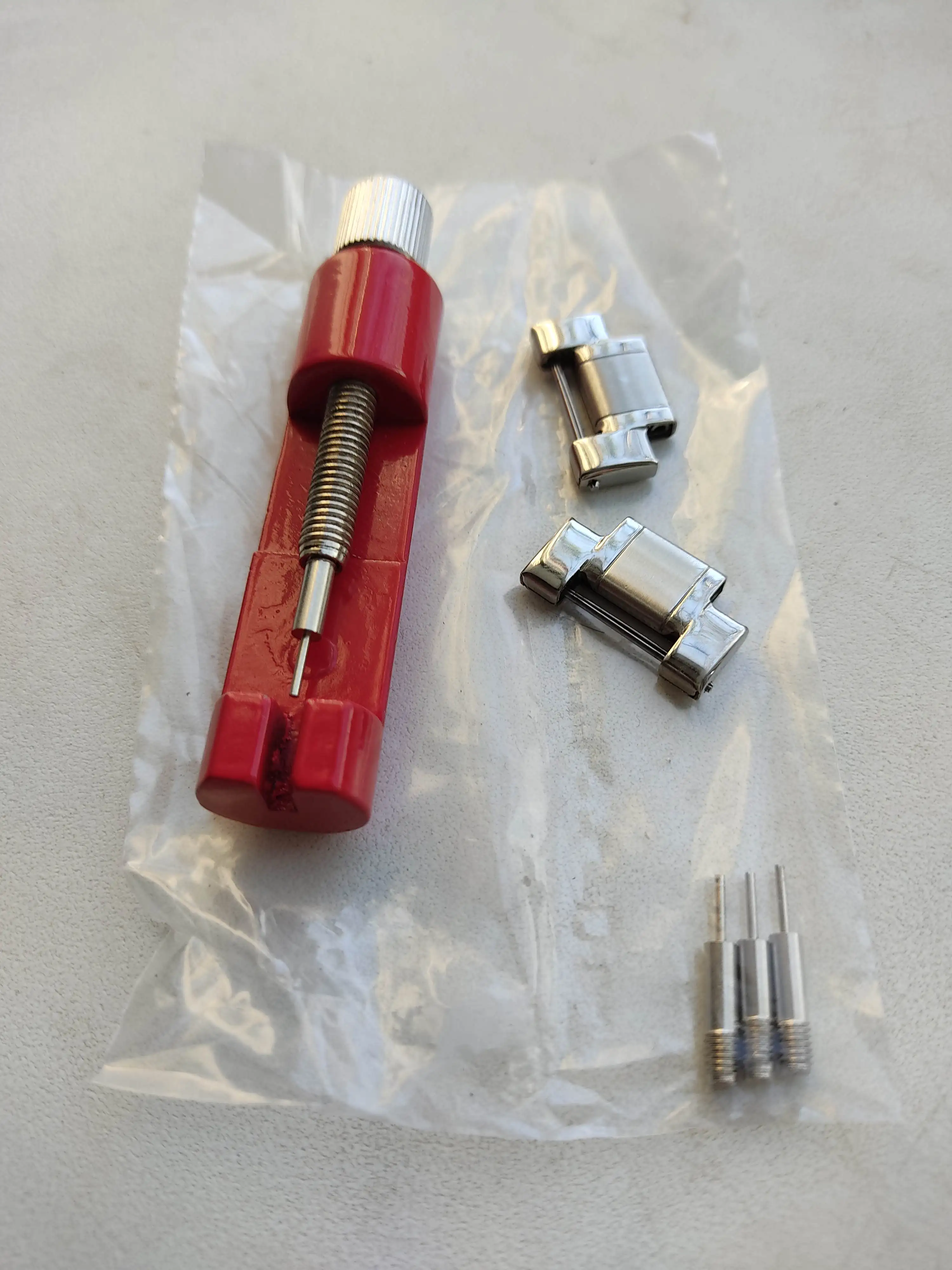 Такое небольшое и дешевое устройство значительно облегчает процесс изменения длины браслета. Толкатели очень тонкие, легко ломаются. Хорошо, что в комплекте их три штуки.
