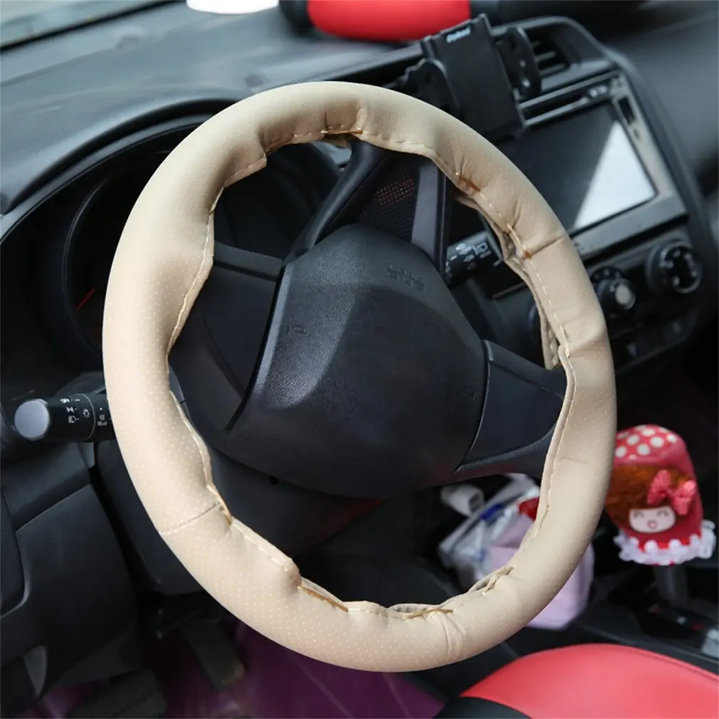 4 цвета DIY текстура мягкий авто чехол рулевого колеса автомобиля с иглами и резьбой искусственная кожа автомобильные Чехлы автомобиля-Стайлинг