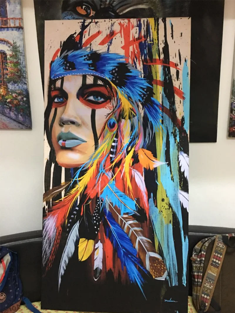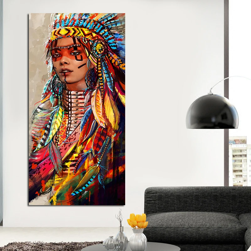 Современные настенные художественные принты, цветные женские парусиновые картины с перьями для гостиной, домашнего декора, Бесплатная Доставка, без рамки