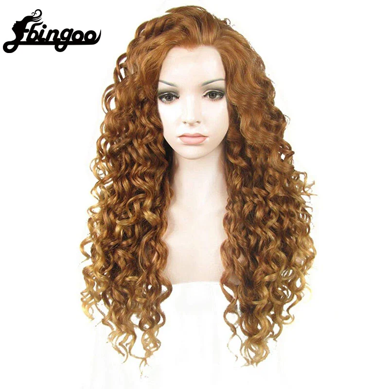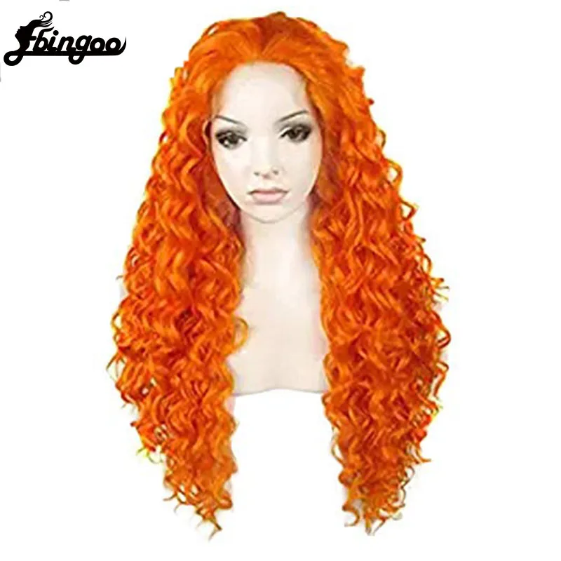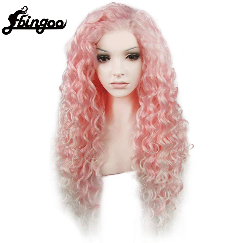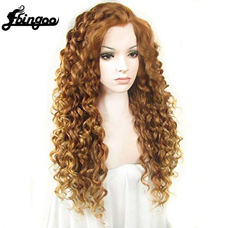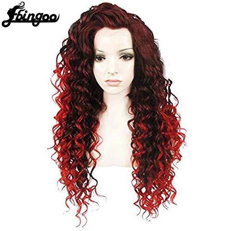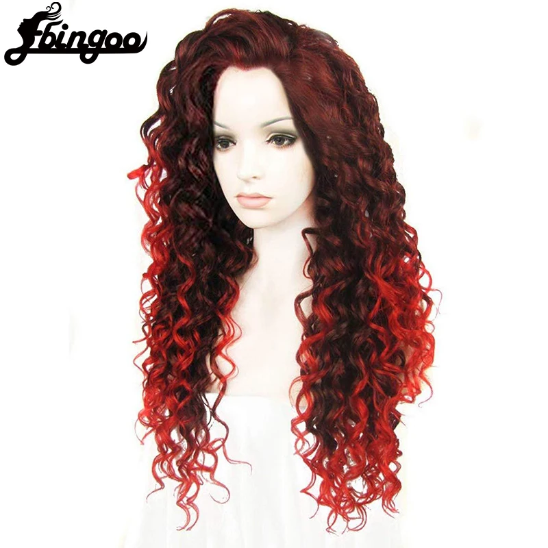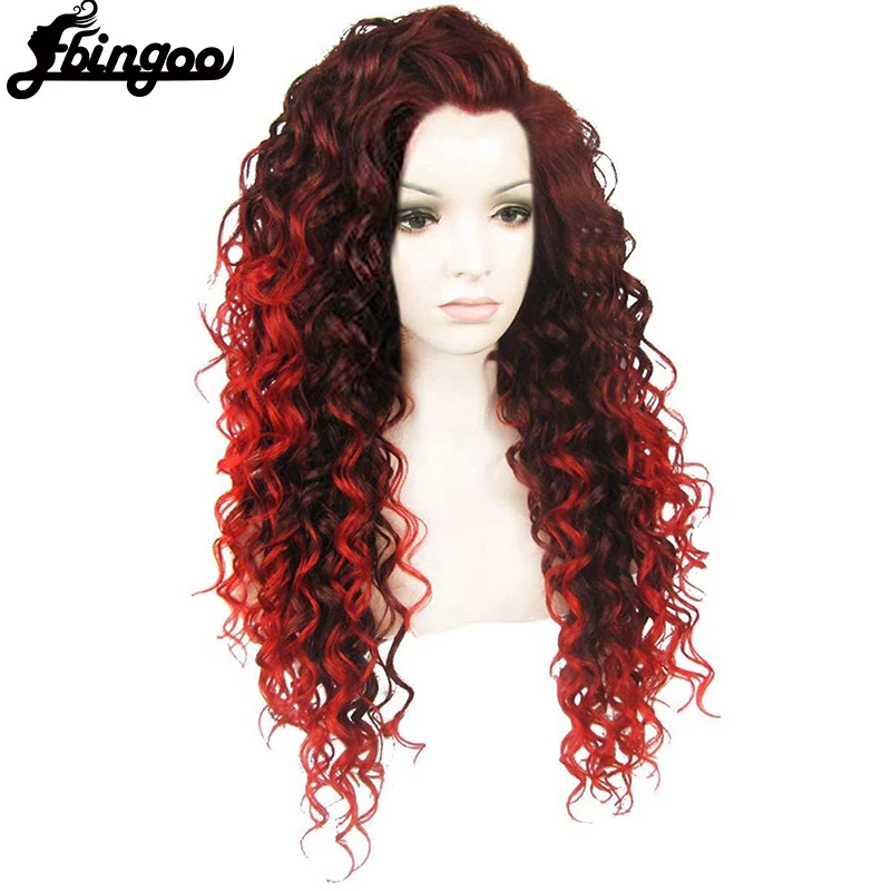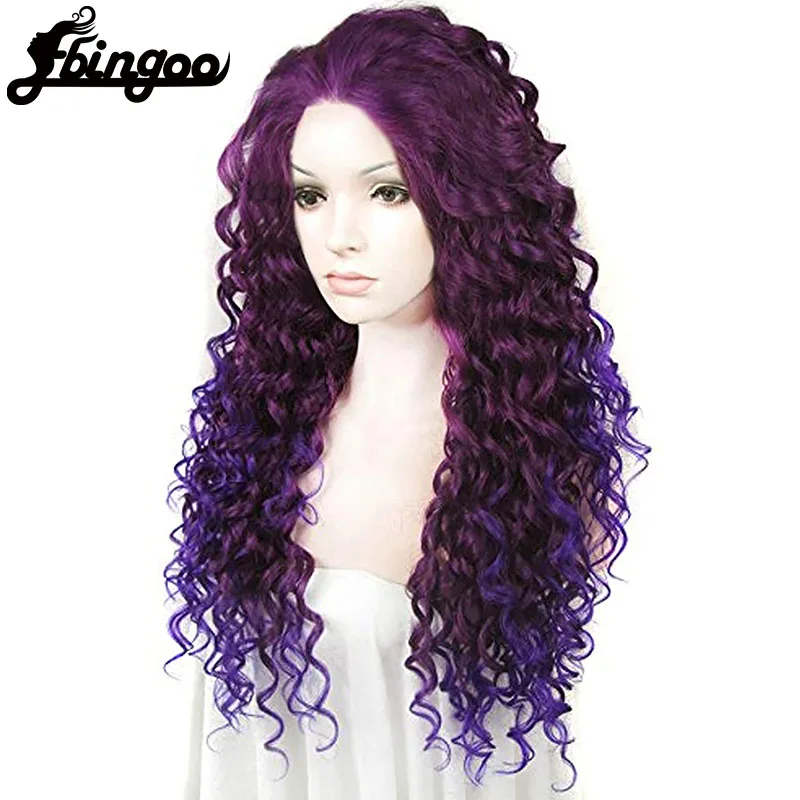 Ebingoo Ombre Фиолетовый Красный Розовый блонд коричневый оранжевый парик длинный кудрявый синтетический кружевной передний парик для женщин высокотемпературное волокно