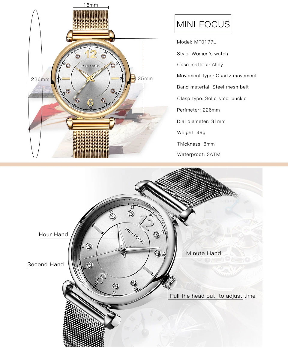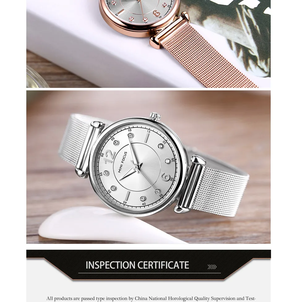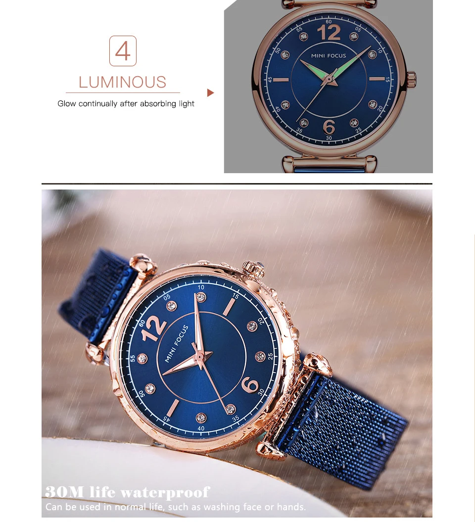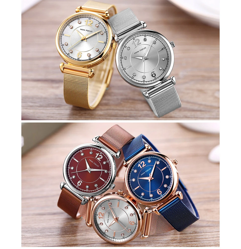 Женские кварцевые часы MINI FOCUS, ультратонкие элегантные часы с ремешком из голубой сетки и кристаллами