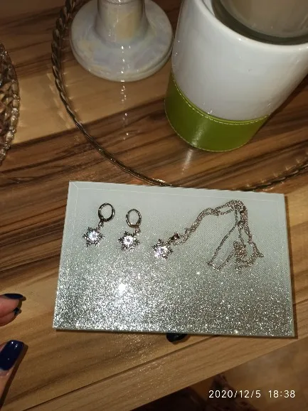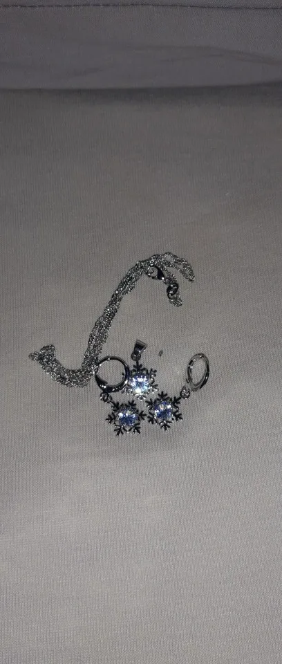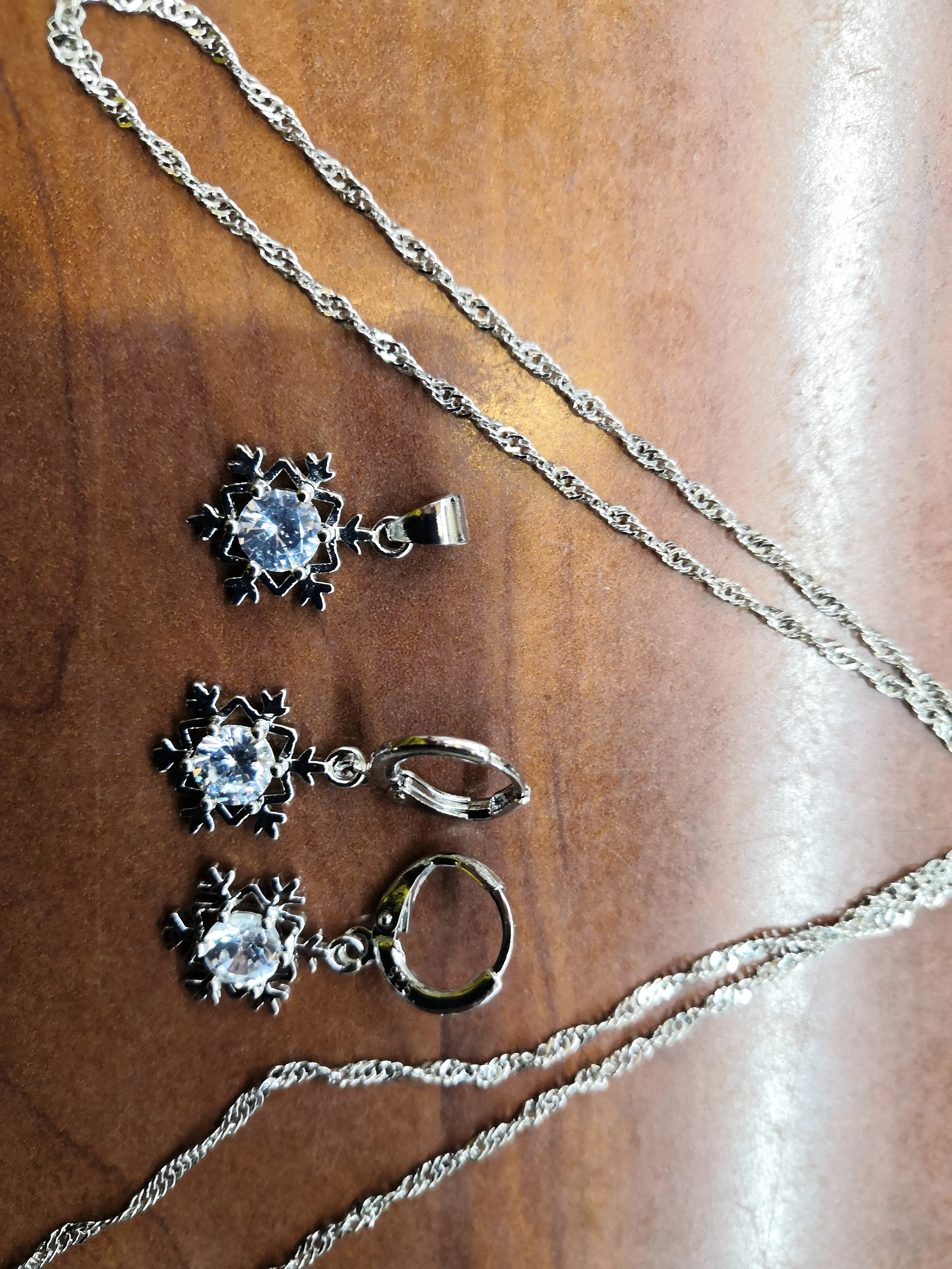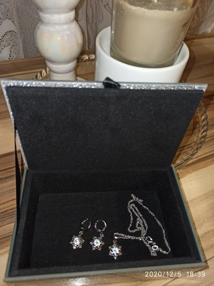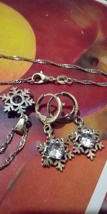 в общем. три звезды за общение, потому как отвечают заезженными фразами, как буд-то не с человеком, а с роботом разговариваешь. посылка шла долго, больше месяца на Кавказ, это тоже не есть хорошо, но учитывая ситуации в странах понимаю. комплект пришёл в нескольких прозрачных пакетиках и ещё всё это було вложено в один пакетик накачанный воздухом. С нынешней пандемией это насторожилр, пришлось открывать на улице и обрабатывать антисептиком. Комплект действительно очень красивый и нежный на каждом изделии стоит проба, насколько это серебро сказать не могу, но вроде на первый взгляд очень похоже. Серëжки,камушки переливаются разными цветам, цепочка идет в комплекте, очень интересная и выглядит так же нежно как и сами снежинки, кручëнное плетение. Товар рекомендую всем. А так продавец молодец, отвечал хоть и как робот, но быстро. Спасибо Али.