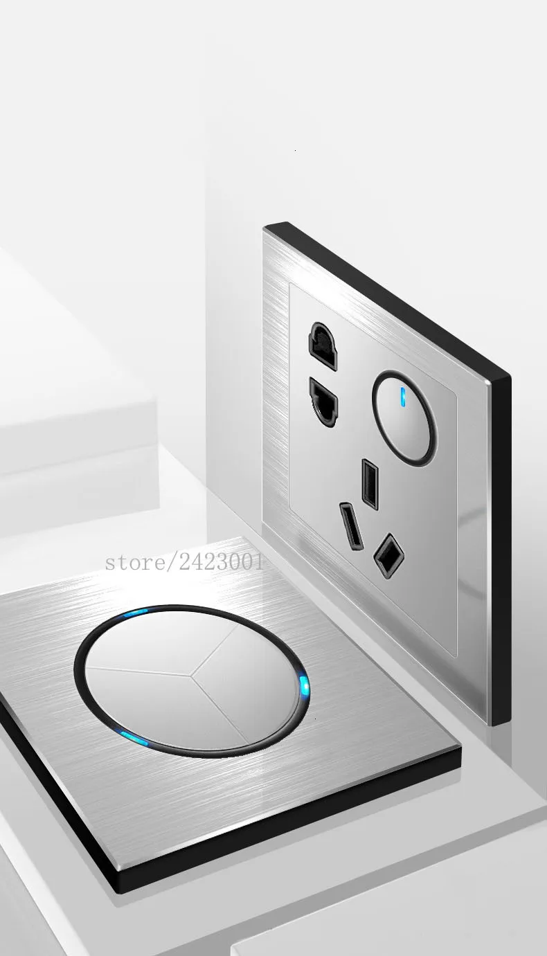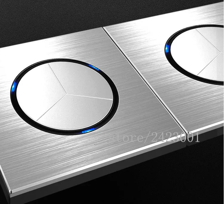 86 Тип 1 2 3 4 gang 1 2 way серебристый алюминиевый сплав панель Переключатель Розетка светодиодная использовать круглая коробка отрасль немецкий ЕС французский светильник розетка