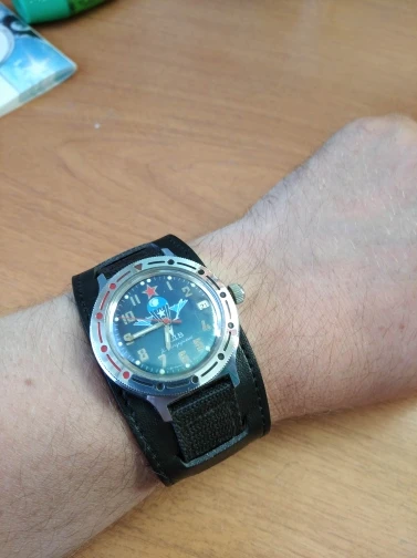 Ремешок заказывал размером 18мм а прислали 19мм. Сжать чтобы вставить в ушки 18мм невозможно, задняя сторона прошита кожзамом. После переговоров с продавцом, открыл спор и деньги вернули. Использовал только подкладку а ремешок поставил свой, купленный два года назад.