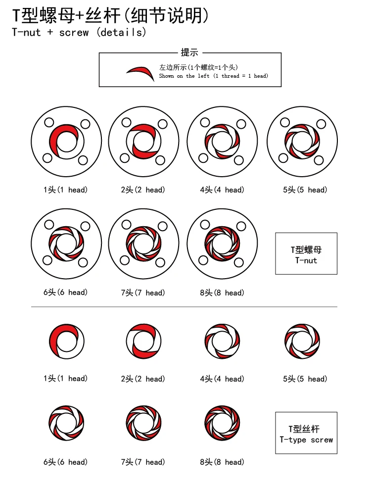 Шаг:4 ммСвинец:4 мм(Одна головка, гайка повернуть один круг, винт вперед 4 мм)
