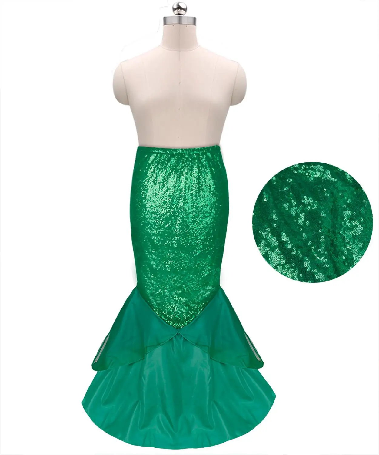 Feeshow Женская зеленая юбка с блестками и хвостом русалки, костюм Русалочки на Хеллоуин, маскарадный костюм Русалочки, юбка макси для женщинНарядное Вечерние