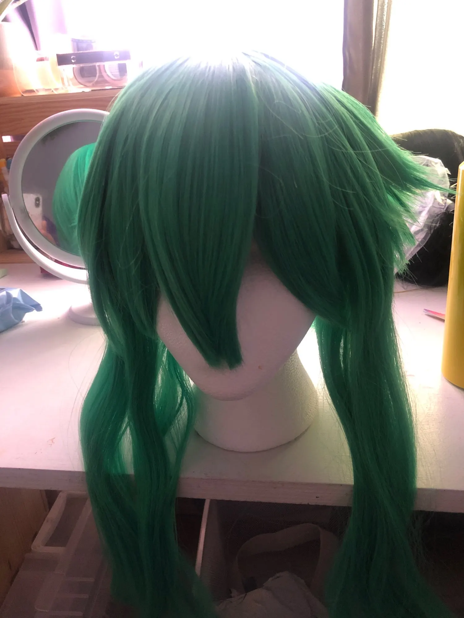 Термостойкий парик для косплея Megpoid Gumi с зеленой травой против Алисы + шапочка