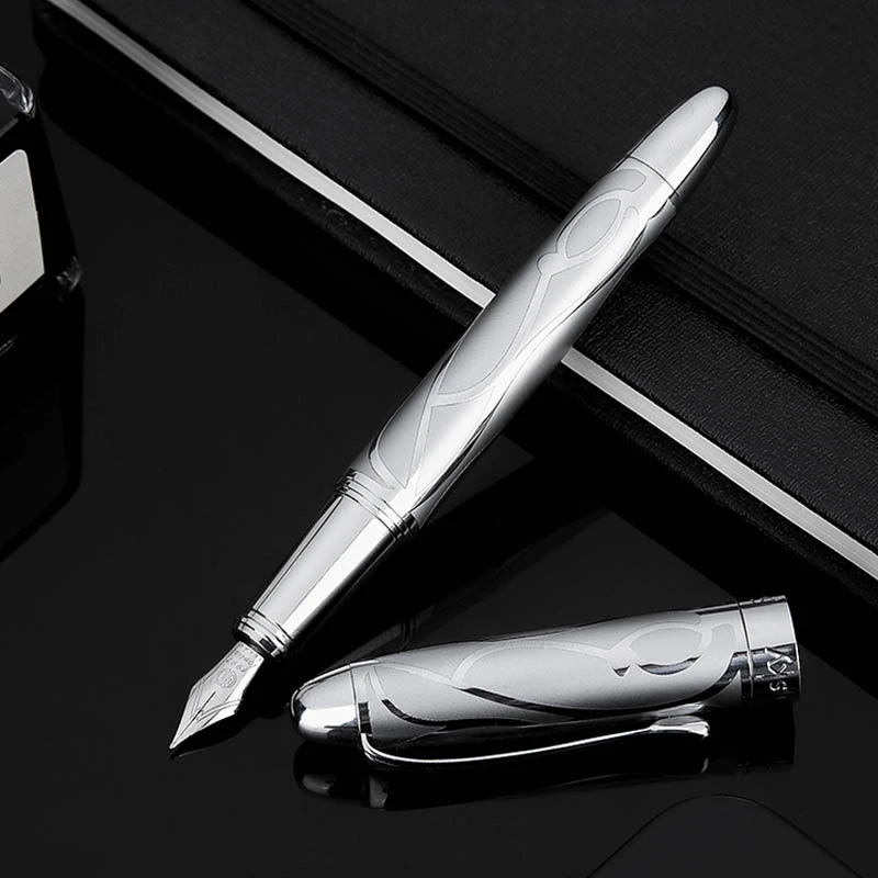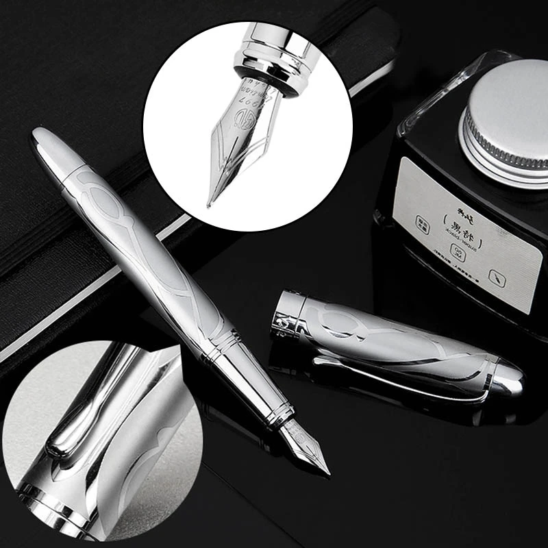 Перьевая ручка HongDian, из нержавеющей стали, с тонким пером, в стиле ретро, серебряная, для студентов, офисных тренировок, канцелярские принадлежности, подарок