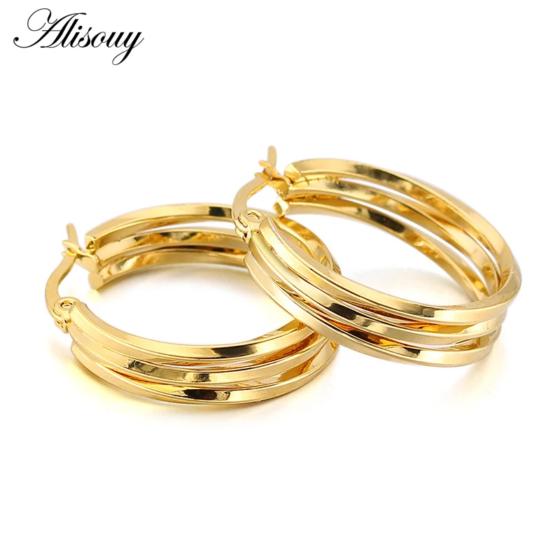 Винтажные женские серьги-кольца Alisouy из нержавеющей стали, круглые кольца золотого цвета в стиле рок, панк, вечерний подарок, оптовая продажа