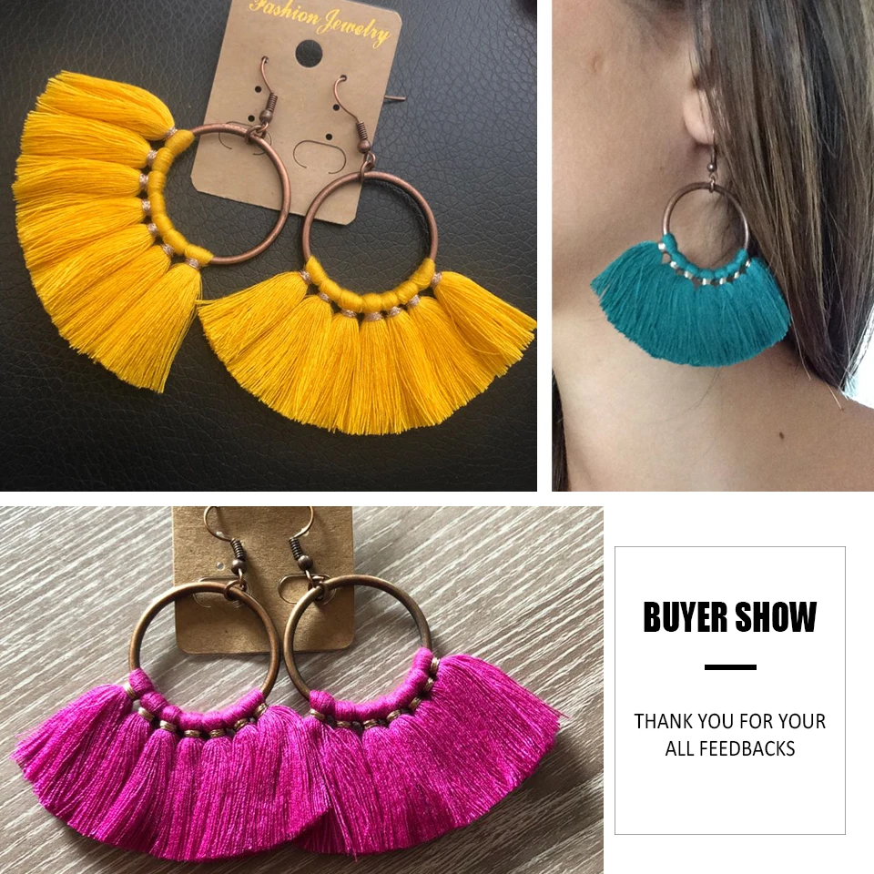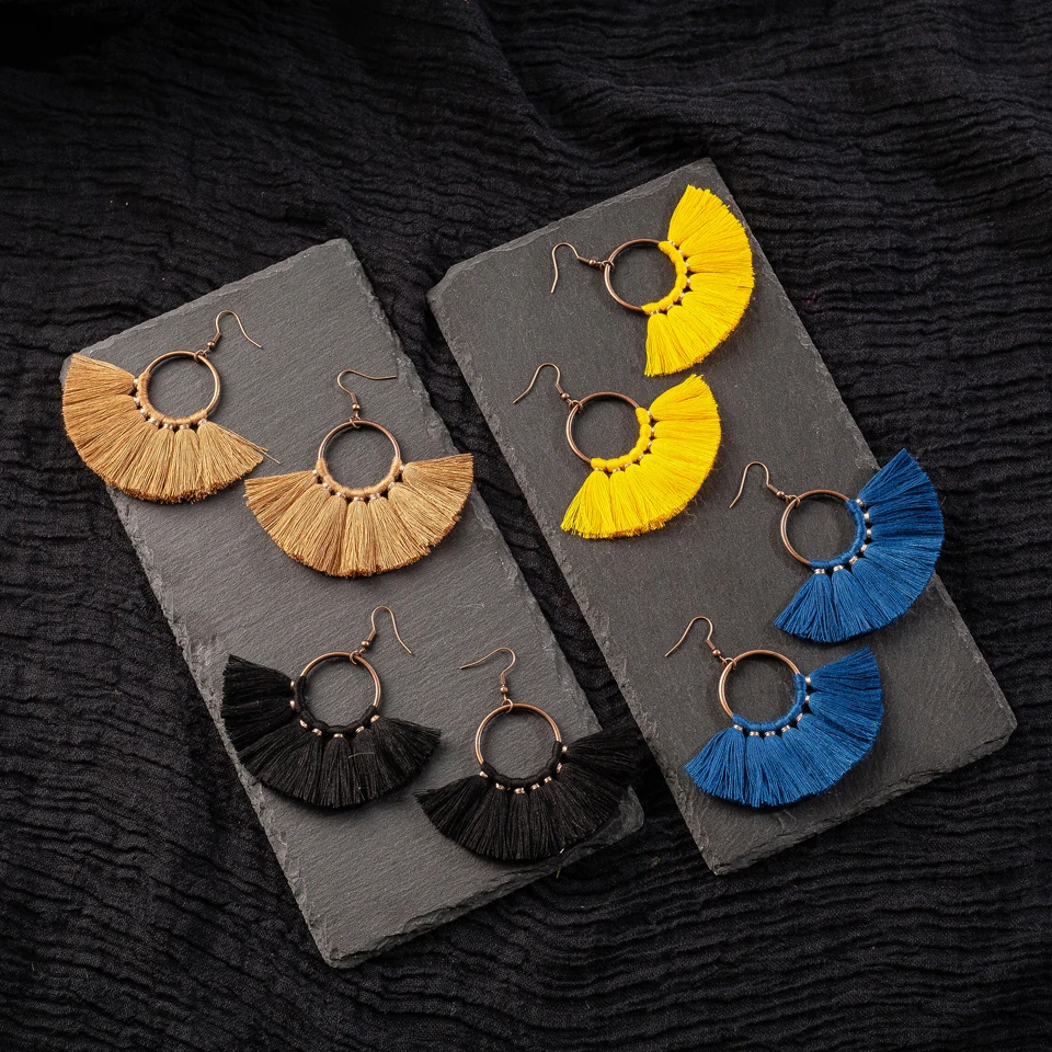 Винтажные висячие серьги с кисточками для женщин, женские модные эффектные этнические богемные серьги в стиле бохо, ювелирные аксессуары, 2019